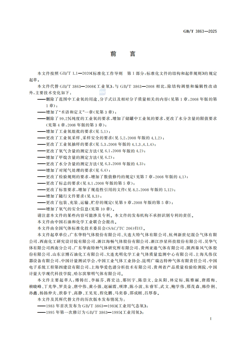 氧工业Industrialoxygen348072@abc3天前发布关注私信0.36MB12页044氧工业Industrialoxygen此内容为付费资源,请付费后查看¥19¥29黄金会员免费钻石会员免费立即购买您当前未登录!建议登陆后购买,可保存购买订单付费资源 第1页 / 共12页 第2页 / 共12页 第3页 / 共12页 第4页 / 共12页 第5页 / 共12页 试读已结束,还剩7页,您可下载完整版后进行离线阅读 THE END标准规范 文本预览 1Cs71.100.20CCS G 86中华人民共和国国家标准GB/T3863一2025代替GB/T3863一2008工业氧Industrial oxygen2025-08-01发布2026-02-01实施国家市场监督管理兽局发布国家标准化管理委员会 查看更多 收起部分 喜欢就支持一下吧收藏