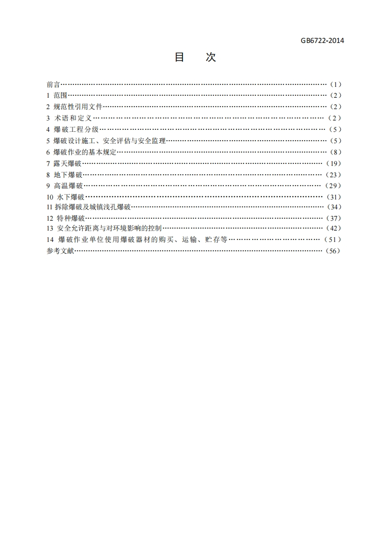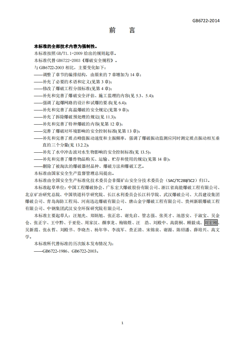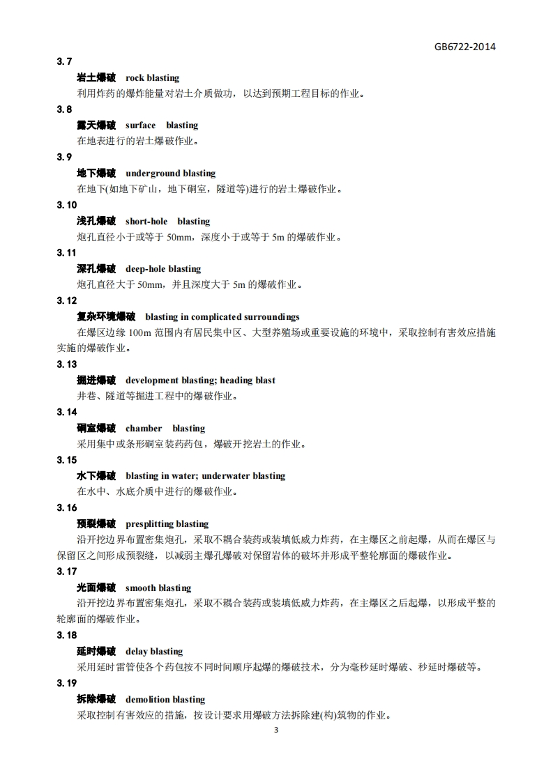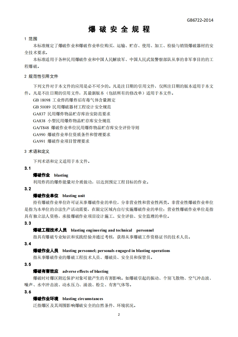 爆破安全规程Safetyregulationsforblasting348072@abc4天前发布关注私信0.95MB58页020爆破安全规程Safetyregulationsforblasting此内容为付费资源,请付费后查看¥19¥29黄金会员免费钻石会员免费立即购买您当前未登录!建议登陆后购买,可保存购买订单付费资源 第1页 / 共58页 第2页 / 共58页 第3页 / 共58页 第4页 / 共58页 第5页 / 共58页 试读已结束,还剩53页,您可下载完整版后进行离线阅读 THE END标准规范 文本预览 ICS13.100GB6722-2014C66中华人民共和国国家标准GB6722-2014代替GB6722-2003爆破安全规程Safety regulations for blasting2014-12-05发布2015-07-01实施中华人民共和国国家质量监督检验检疫总局发布中国国家标准化管理委员会 查看更多 收起部分 喜欢就支持一下吧收藏