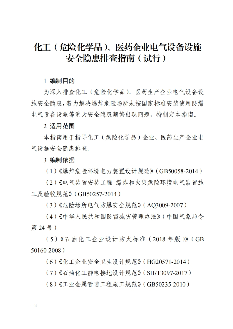 电气设备设施安全隐患排杏指南(试行)大约个348072@abc4天前发布关注私信0.41MB17页050电气设备设施安全隐患排杏指南(试行)大约个此内容为付费资源,请付费后查看¥19¥29黄金会员免费钻石会员免费立即购买您当前未登录!建议登陆后购买,可保存购买订单付费资源 第1页 / 共17页 第2页 / 共17页 第3页 / 共17页 第4页 / 共17页 第5页 / 共17页 试读已结束,还剩12页,您可下载完整版后进行离线阅读 THE END标准规范 文本预览 化工(危险化学品)、医药企业电气设备设施安全隐患排查指南(试行)吉林省应急管理厅2024年10月-1- 查看更多 收起部分 喜欢就支持一下吧收藏