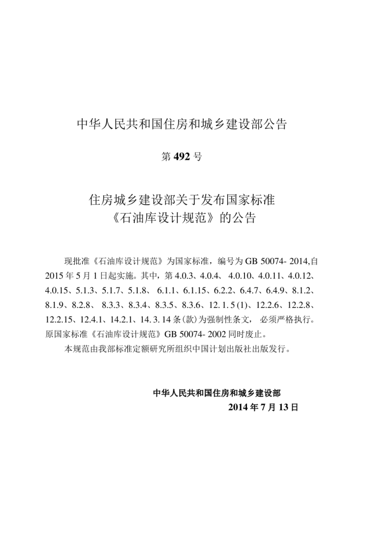 石油库设计规范Codefordesignofoildepot348072@abc3天前发布关注私信19.72MB194页041石油库设计规范Codefordesignofoildepot此内容为付费资源,请付费后查看¥19¥29黄金会员免费钻石会员免费立即购买您当前未登录!建议登陆后购买,可保存购买订单付费资源 第1页 / 共194页 第2页 / 共194页 第3页 / 共194页 第4页 / 共194页 第5页 / 共194页 试读已结束,还剩189页,您可下载完整版后进行离线阅读 THE END标准规范 文本预览 UDC中华人民共和国国家标准GBGB50074-2014石油库设计规范Code for design of oil depot2014-07.13发布2015-05-01实施中华人民共和国住房和城乡建设部中华人民共和国国家质量监督检验检疫总局联合发布 查看更多 收起部分 喜欢就支持一下吧收藏