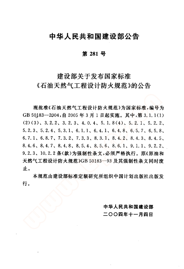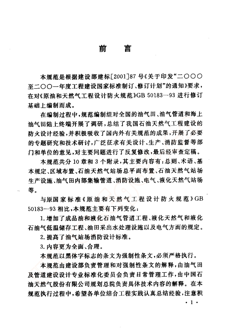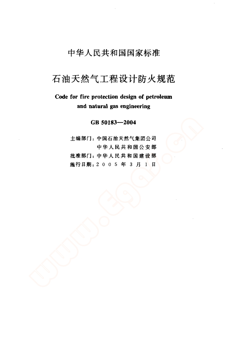 石沺大然程设计防火规池Codeforfireprotectiondesignofpetroleumandnaturalgasengineering348072@abc3天前发布关注私信4.49MB186页025石沺大然程设计防火规池Codeforfireprotectiondesignofpetroleumandnaturalgasengineering此内容为付费资源,请付费后查看¥19¥29黄金会员免费钻石会员免费立即购买您当前未登录!建议登陆后购买,可保存购买订单付费资源 第1页 / 共186页 第2页 / 共186页 第3页 / 共186页 第4页 / 共186页 第5页 / 共186页 试读已结束,还剩181页,您可下载完整版后进行离线阅读 THE END标准规范 文本预览 中华人民共和国国家标准GBPGB50183一2004石油天然气工程设计防火规范Code for fire protection design of petroleumand natural gas engineering2004-11-04发布2005-03-01实施中华人民共和国建设部中华人民共和国国家质量监督检验检疫总局联合发布 查看更多 收起部分 喜欢就支持一下吧收藏