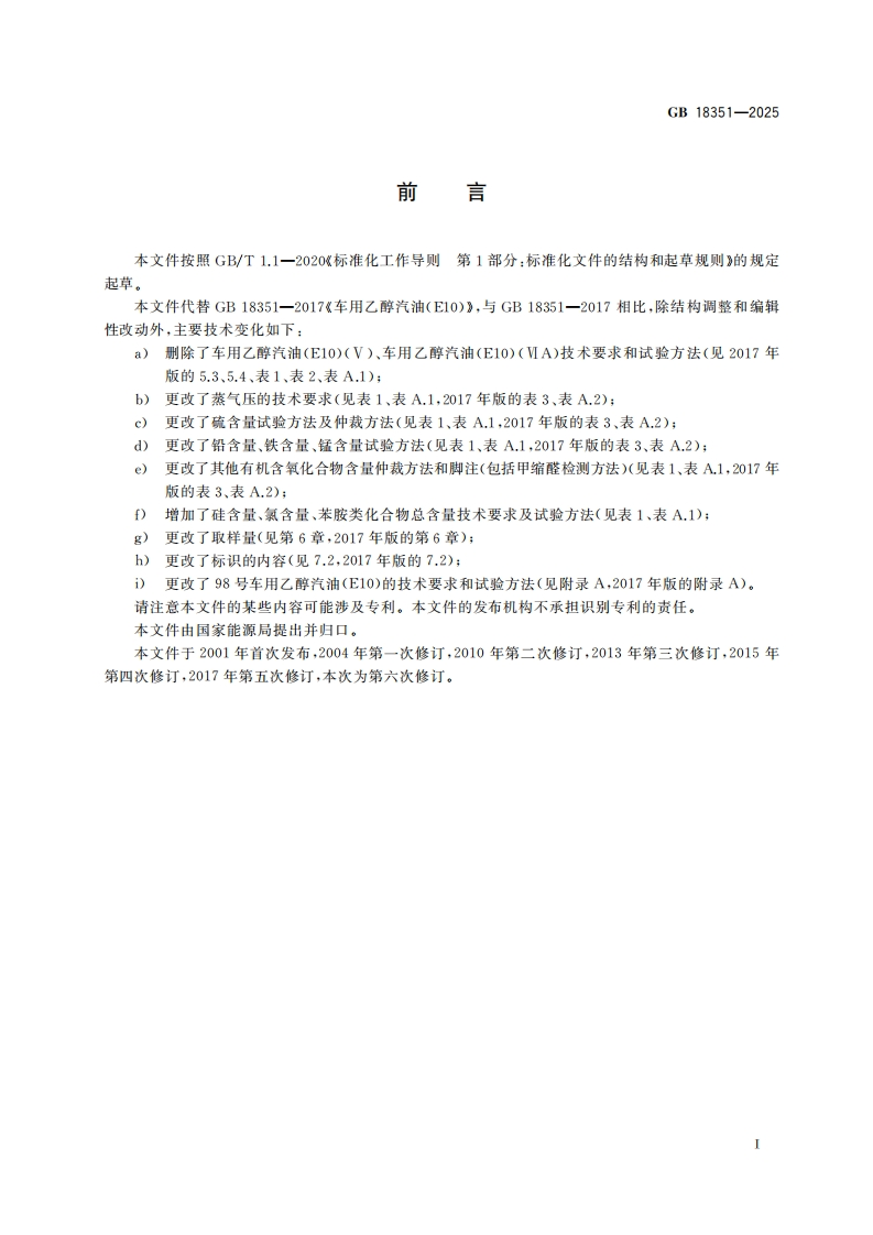 车用乙醇汽油Ethanolgasolineformotorvehicles348072@abc3天前发布关注私信0.35MB11页032车用乙醇汽油Ethanolgasolineformotorvehicles此内容为付费资源,请付费后查看¥19¥29黄金会员免费钻石会员免费立即购买您当前未登录!建议登陆后购买,可保存购买订单付费资源 第1页 / 共11页 第2页 / 共11页 第3页 / 共11页 第4页 / 共11页 第5页 / 共11页 试读已结束,还剩6页,您可下载完整版后进行离线阅读 THE END标准规范 文本预览 ICS75.160.20CCS E 31中华人民共和国国家标准GB18351-2025代替GB18351一2017车用乙醇汽油Ethanol gasoline for motor vehicles2025-06-30发布2026-07-01实施国家市场监督管理兽局发布国家标准化管理委员会 查看更多 收起部分 喜欢就支持一下吧收藏