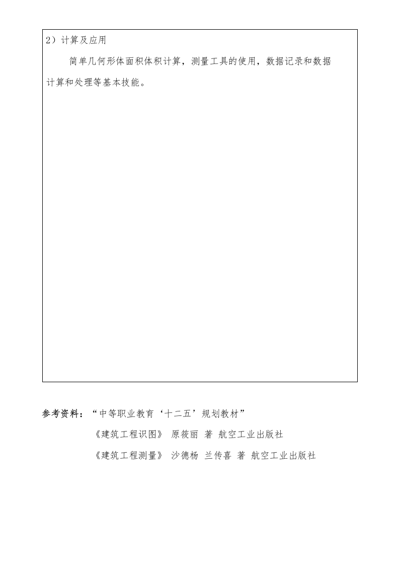 云南农业职业技术学院2022年单独招生建筑工程类考试大纲考生类别:三校生应(往)届毕业生(建筑工程类)参加测试的专业:工程测量技术、工程造价、水利工程、园林工程技术、测绘地理信息技术考核方式:文化素质口试(200分)+职业技能考核(200分)测试大纲(要点):一、三校生文化素质:(200分)】考试科目为:语文、数学、英语、政治,共计四科、总分200分。网络远程测试(电脑、移动设备在线答题)。考试时间:以系统计时为准。二、职业技能考核(200分)网络远程测试(电脑、移动设备在线答题),共计200分。考试时间:以系统计时为准。考试范围:1.职业意识考生对专业的了解程度、职业性质、适应职业岗位、选择适合自己的职业的能力、职业价值观等。2.职业素养考生职业理想、基本职业道德规范、竞争上岗的意识与能力。职场礼仪、沟通、协作能力。自我分析、情绪管理、时间管理与职业规划能力等。3.职业技能1)识图主要考查:建筑识图基础知识和房屋构造基础知识,包括各种识图的投影原理,房屋的基本组成和作用,建筑施工图的基本内容,图示图例等,重点考查三面正投影原理,基本房屋组成和作用等基础知识:形体实测及面积体积计算: