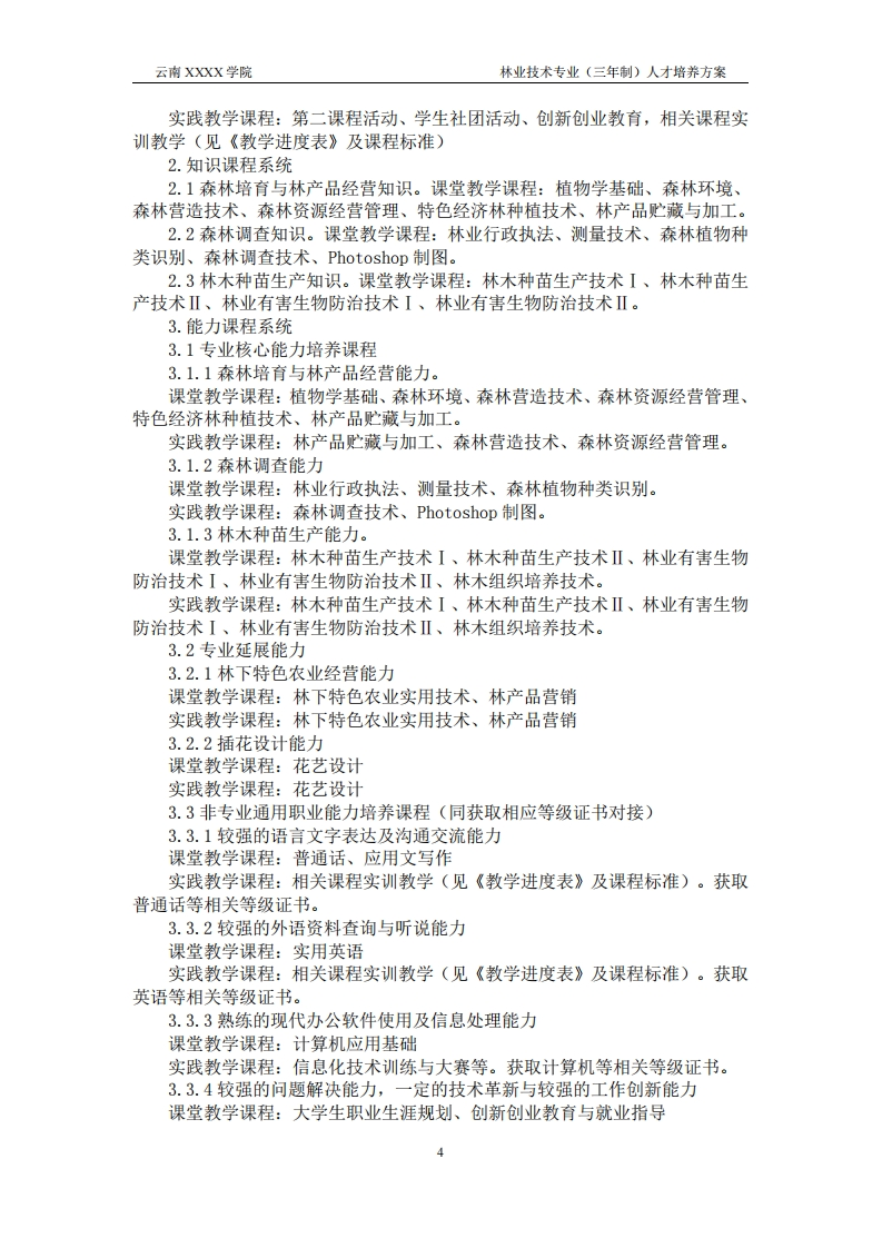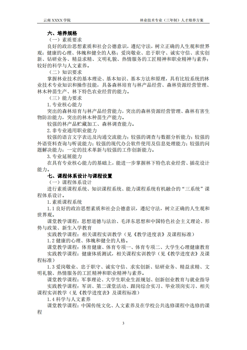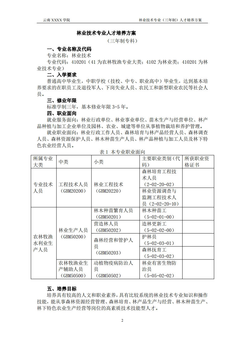 林业技术专业人才培养方案(三年制)348072@abc17小时前发布关注私信0.39MB26页026林业技术专业人才培养方案(三年制)此内容为付费资源,请付费后查看¥19¥29黄金会员免费钻石会员免费立即购买您当前未登录!建议登陆后购买,可保存购买订单付费资源 第1页 / 共26页 第2页 / 共26页 第3页 / 共26页 第4页 / 共26页 第5页 / 共26页 试读已结束,还剩21页,您可下载完整版后进行离线阅读 THE END标准规范 文本预览 云南XXX学院林业技术人才培养方案 查看更多 收起部分 喜欢就支持一下吧收藏