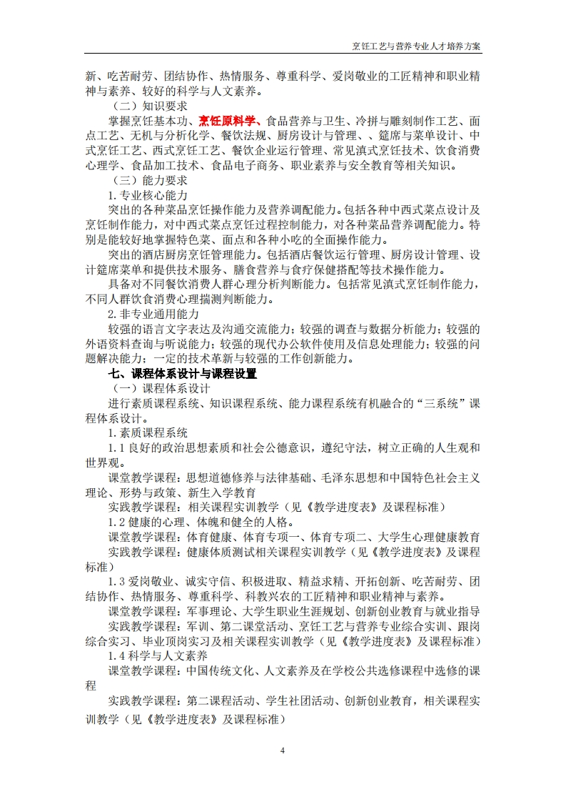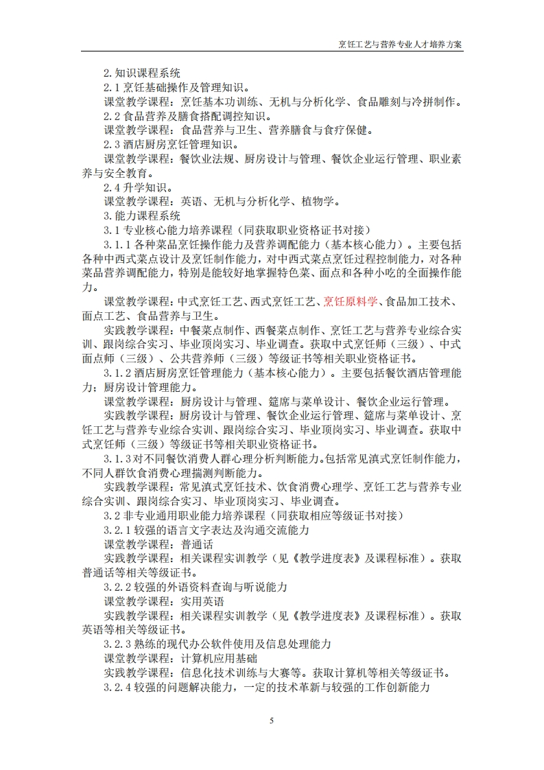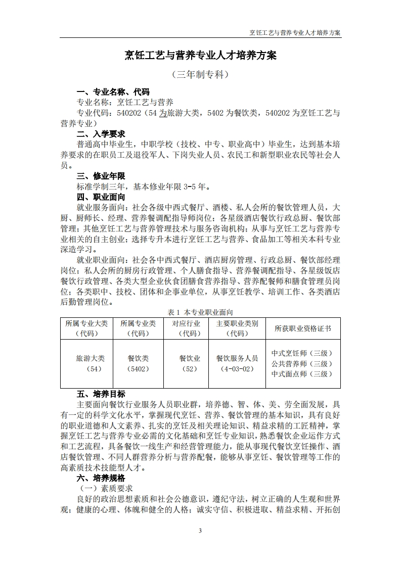 烹饪工艺与营养(三年制)人才培养方案348072@abc16小时前发布关注私信1.40MB23页036烹饪工艺与营养(三年制)人才培养方案此内容为付费资源,请付费后查看¥19¥29黄金会员免费钻石会员免费立即购买您当前未登录!建议登陆后购买,可保存购买订单付费资源 第1页 / 共23页 第2页 / 共23页 第3页 / 共23页 第4页 / 共23页 第5页 / 共23页 试读已结束,还剩18页,您可下载完整版后进行离线阅读 THE END标准规范 文本预览 XXX职业技术学院烹饪工艺与营养专业人才培养方案(三年制专科)2022年5月 查看更多 收起部分 喜欢就支持一下吧收藏