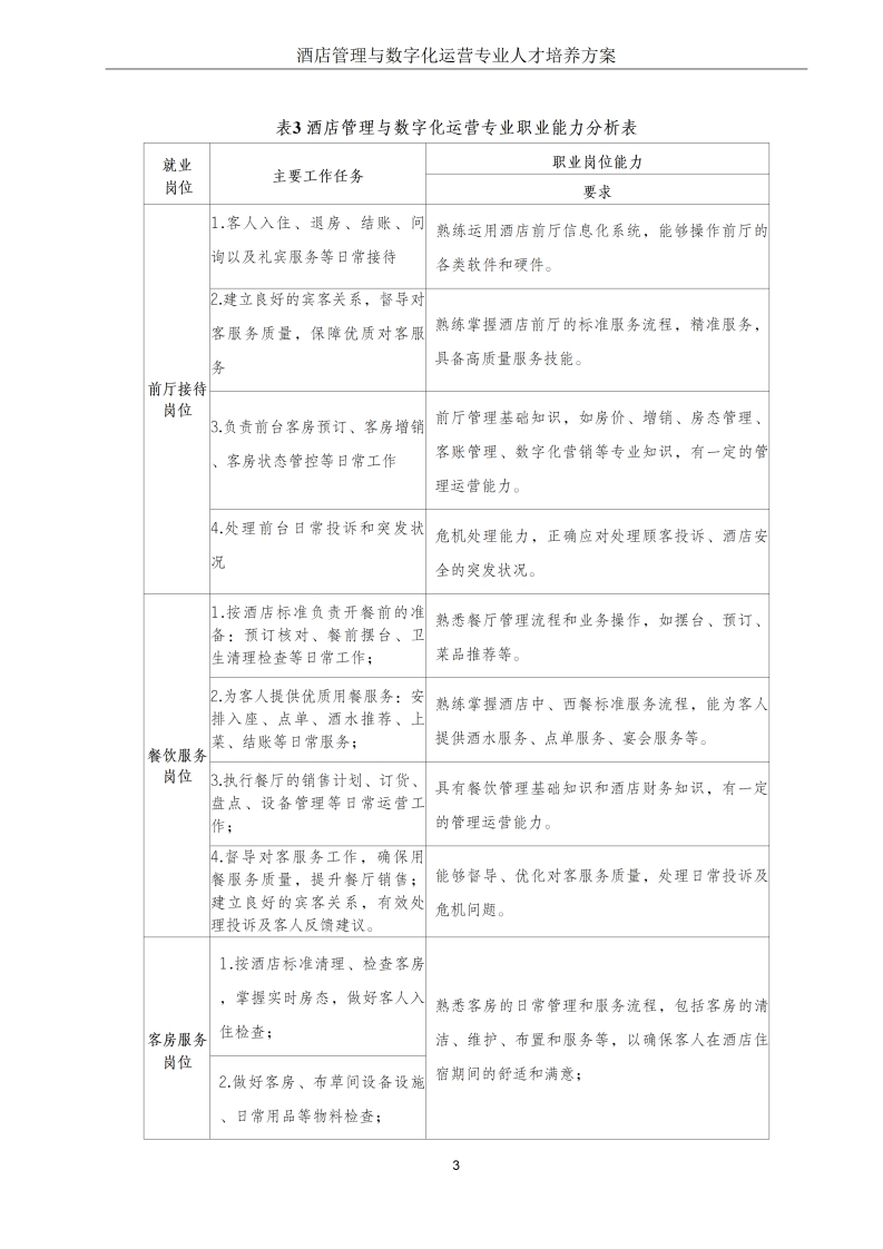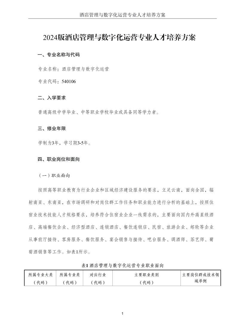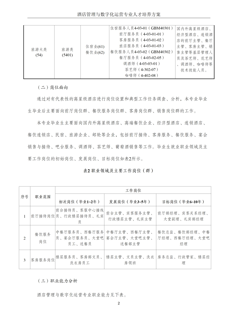 酒店管理与数字化运营专业人才培养方案(2024版)348072@abc14小时前发布关注私信15.67MB62页049酒店管理与数字化运营专业人才培养方案(2024版)此内容为付费资源,请付费后查看¥19¥29黄金会员免费钻石会员免费立即购买您当前未登录!建议登陆后购买,可保存购买订单付费资源 第1页 / 共62页 第2页 / 共62页 第3页 / 共62页 第4页 / 共62页 第5页 / 共62页 试读已结束,还剩57页,您可下载完整版后进行离线阅读 THE END标准规范 文本预览 职业技术学院酒店管理与数字化运营专业人才培养方案(三年制专科)2024版编制人:编制单位:职业技术学院☐产业学院投资集团有限公司游饭店行业协会编制日期:2024年8月审核人:专业负责人: 查看更多 收起部分 喜欢就支持一下吧收藏