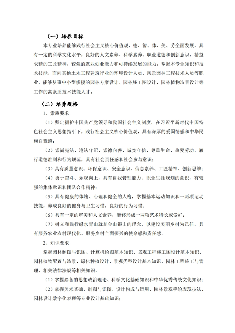 风景园林设计专业人才培养方案348072@abc14小时前发布关注私信0.97MB34页037风景园林设计专业人才培养方案此内容为付费资源,请付费后查看¥19¥29黄金会员免费钻石会员免费立即购买您当前未登录!建议登陆后购买,可保存购买订单付费资源 第1页 / 共34页 第2页 / 共34页 第3页 / 共34页 第4页 / 共34页 第5页 / 共34页 试读已结束,还剩29页,您可下载完整版后进行离线阅读 THE END标准规范 文本预览 风景园林设计专业人才培养方案(三年制)修订时间:2022年6月 查看更多 收起部分 喜欢就支持一下吧收藏