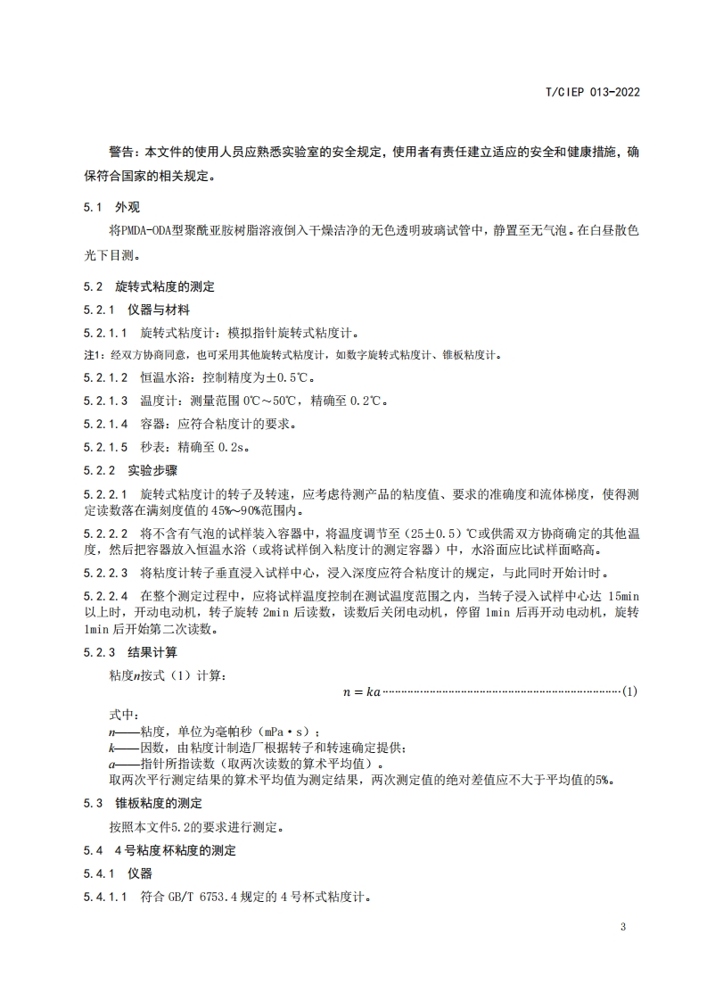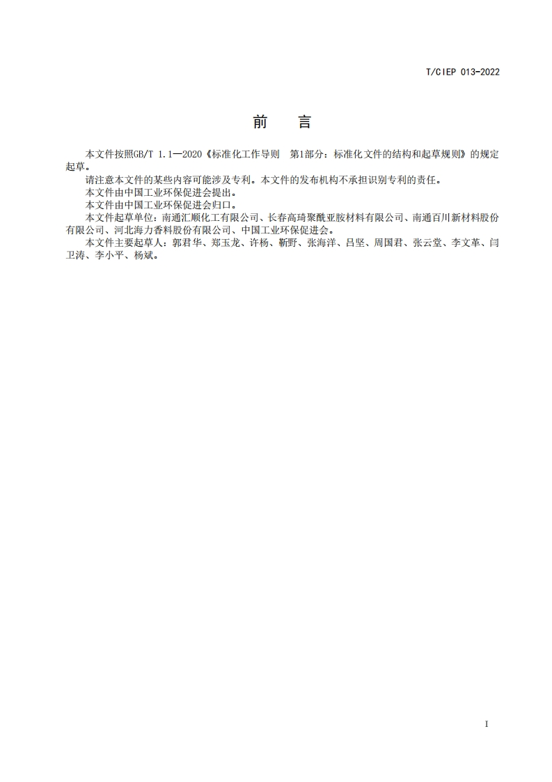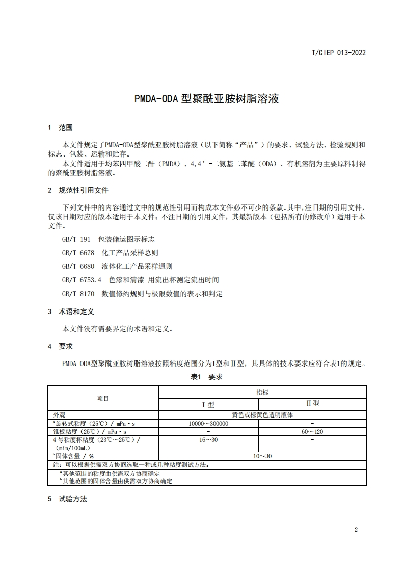 PMDA-0DA型聚酰亚胺树脂溶液PMDA-ODAPolyimideresinsolution348072@abc3天前发布关注私信0.32MB6页043PMDA-0DA型聚酰亚胺树脂溶液PMDA-ODAPolyimideresinsolution此内容为付费资源,请付费后查看¥19¥23黄金会员免费钻石会员免费立即购买您当前未登录!建议登陆后购买,可保存购买订单付费资源 第1页 / 共6页 第2页 / 共6页 第3页 / 共6页 第4页 / 共6页 第5页 / 共6页 试读已结束,还剩1页,您可下载完整版后进行离线阅读 THE END标准规范 文本预览 ICS83.080.20CCS G32I/CIEP团体标准T/C1EP013-2022PMDA-ODA型聚酰亚胺树脂溶液PMDA-ODA Polyimide resin solution2022-06-28发布2022-07-30实施中国工业环保促进会发布 查看更多 收起部分 喜欢就支持一下吧收藏