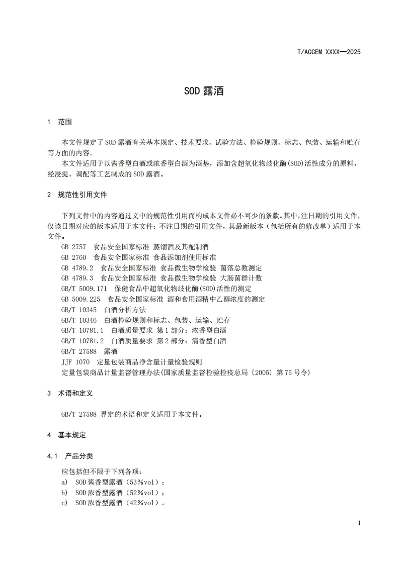 SOD露酒SOD-infusedchineseherballiquor348072@abc3天前发布关注私信1.15MB8页050SOD露酒SOD-infusedchineseherballiquor此内容为付费资源,请付费后查看¥19¥23黄金会员免费钻石会员免费立即购买您当前未登录!建议登陆后购买,可保存购买订单付费资源 第1页 / 共8页 第2页 / 共8页 第3页 / 共8页 第4页 / 共8页 第5页 / 共8页 试读已结束,还剩3页,您可下载完整版后进行离线阅读 THE END标准规范 文本预览 ICS67.160.10CCS X 63IACCEM团体标准T/ACCEM XXXX-2025S0D露酒SOD-infused chinese herbal liquor(征求意见稿)2025-XX-XX发布2025-XX-XX实施中国商业企业管理协会发布 查看更多 收起部分 喜欢就支持一下吧收藏