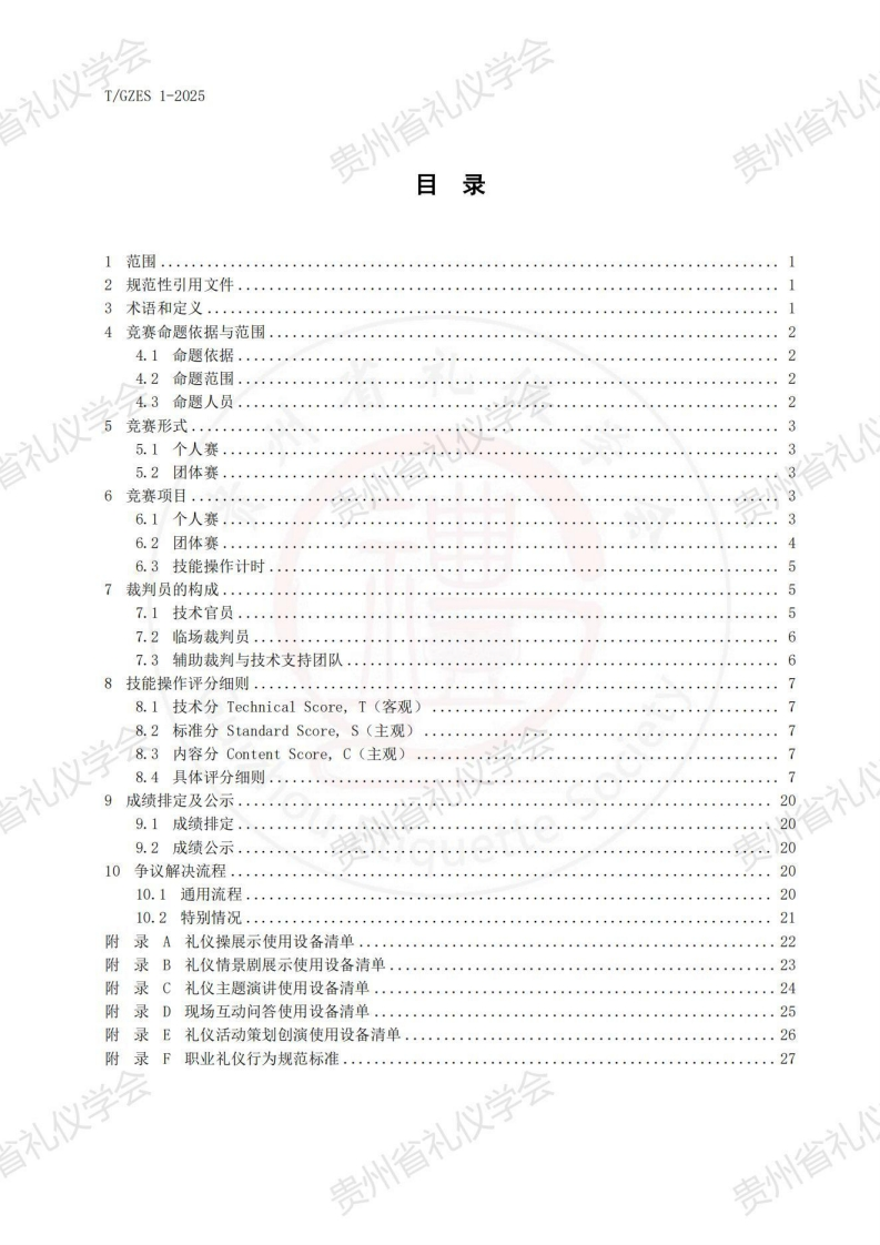 T_GZES1-2025贵州省礼仪学会贵州省职业礼仪技能竞赛技术规程TechnicalRegulationsofProfessionalEtiquetteSkillsCompetition348072@abc3天前发布关注私信8.43MB36页035T_GZES1-2025贵州省礼仪学会贵州省职业礼仪技能竞赛技术规程TechnicalRegulationsofProfessionalEtiquetteSkillsCompetition此内容为付费资源,请付费后查看¥19¥23黄金会员免费钻石会员免费立即购买您当前未登录!建议登陆后购买,可保存购买订单付费资源 第1页 / 共36页 第2页 / 共36页 第3页 / 共36页 第4页 / 共36页 第5页 / 共36页 试读已结束,还剩31页,您可下载完整版后进行离线阅读 THE END标准规范 文本预览 1Cs03.080.01CCS A12礼仪学会TGZES州省团体标准T/GZES 1-2025礼仪学会贵州省礼仪学会贵州省礼职业礼仪技能竞赛技术规程Technical Regulations of Professional Etiquette Skills Competition礼仪学会仪学会(征求意见稿)贵州省礼2025-0X-XX发布2025-0X-XX实施礼仪学会贵州省礼仪学会发布贵州省贵州省礼 查看更多 收起部分 喜欢就支持一下吧收藏