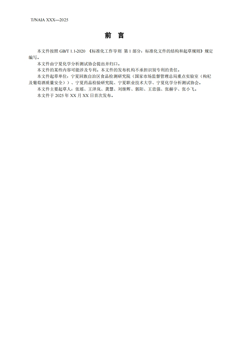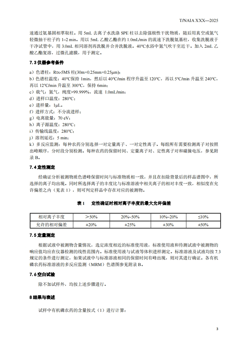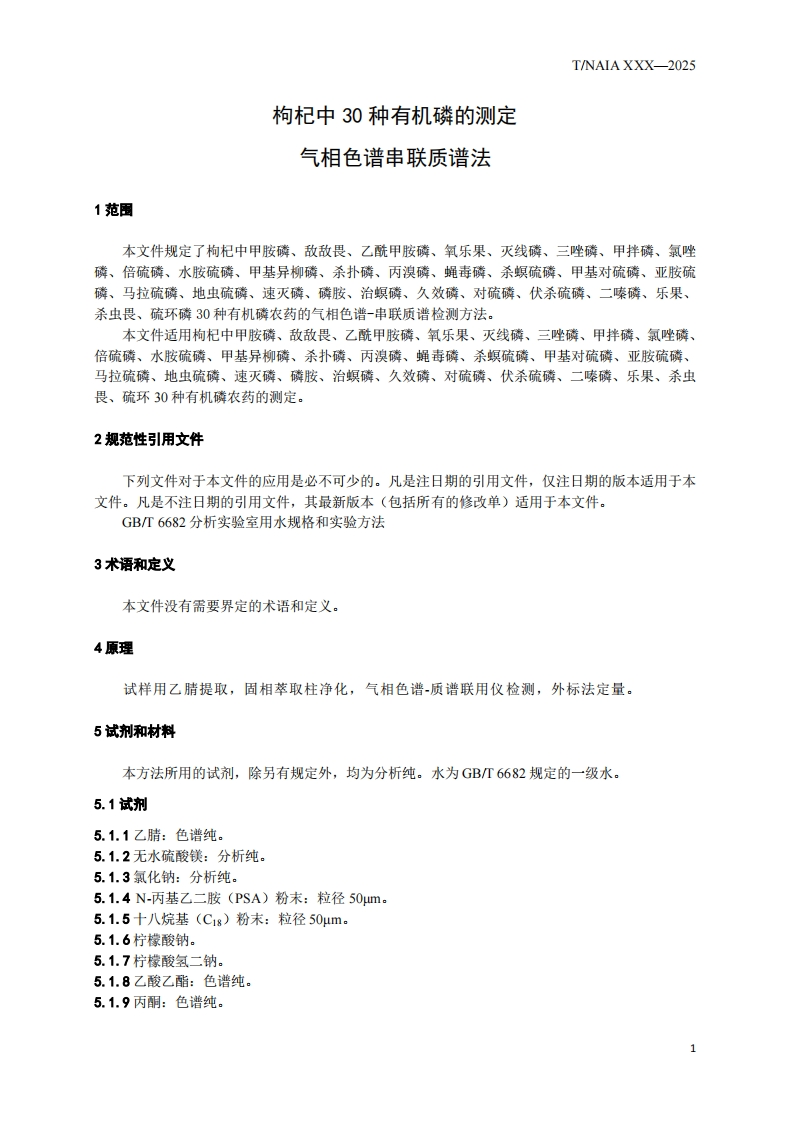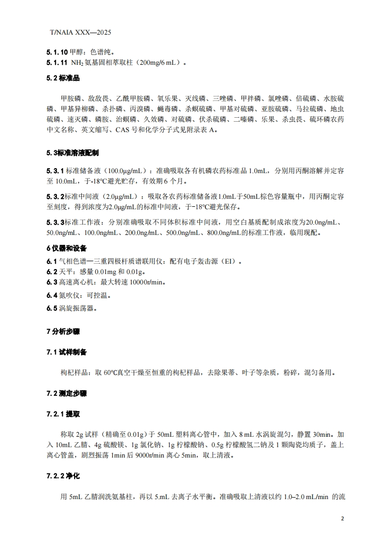 T_NAIAXXX-2025枸杞中30种有机磷的测定气相色谱串联质谱法Determinationof30organophosphoruscompoundsinwolfberrybyGC-MS_MS348072@abc3天前发布关注私信1.20MB14页024T_NAIAXXX-2025枸杞中30种有机磷的测定气相色谱串联质谱法Determinationof30organophosphoruscompoundsinwolfberrybyGC-MS_MS此内容为付费资源,请付费后查看¥19¥23黄金会员免费钻石会员免费立即购买您当前未登录!建议登陆后购买,可保存购买订单付费资源 第1页 / 共14页 第2页 / 共14页 第3页 / 共14页 第4页 / 共14页 第5页 / 共14页 试读已结束,还剩9页,您可下载完整版后进行离线阅读 THE END标准规范 文本预览 1C867.100C03C144TNAIA团体标准T/NAIA XXX-2025枸杞中30种有机磷的测定气相色谱串联质谱法Determination of 30 organophosphorus compounds in wol fberry byGC-MS/MS2025-XX-XX发布2025-XX-XX实施宁夏化学分析测试协会发布 查看更多 收起部分 喜欢就支持一下吧收藏