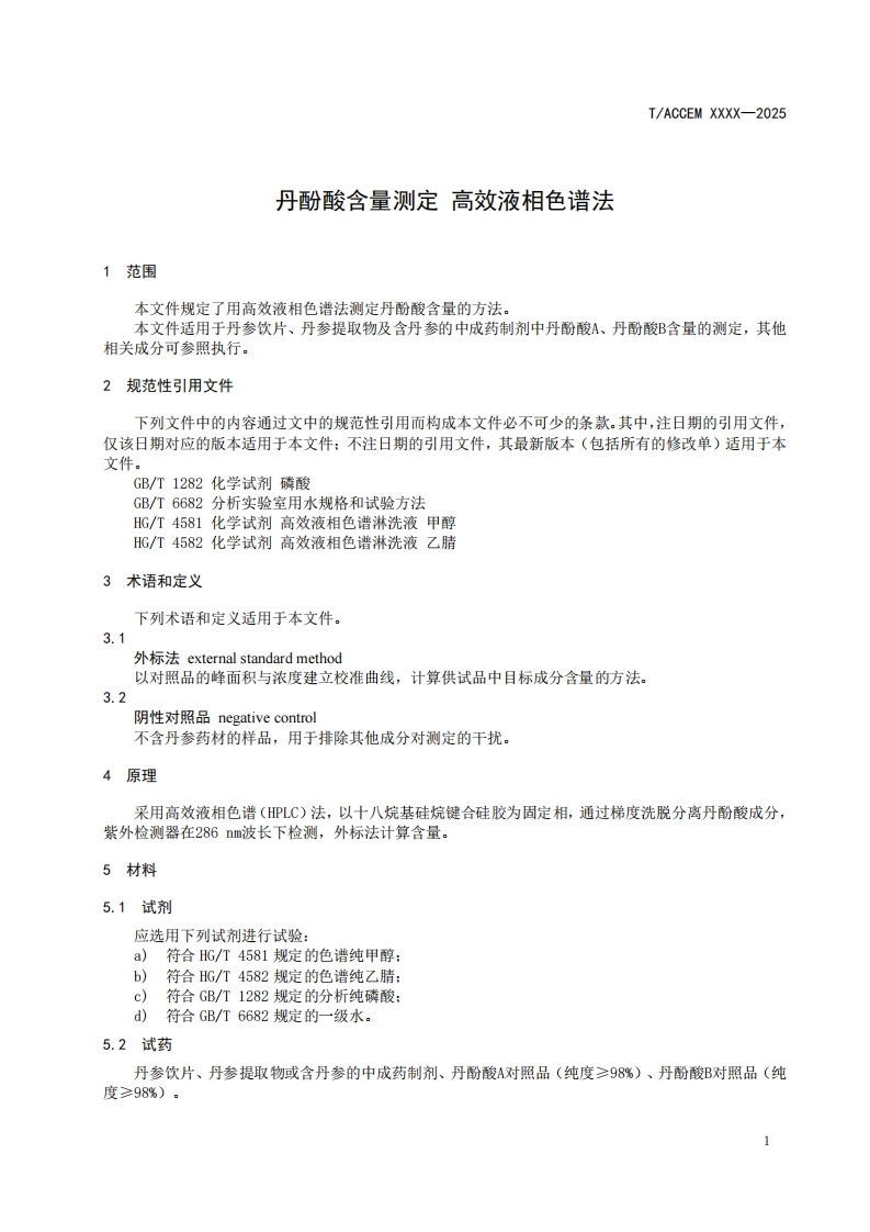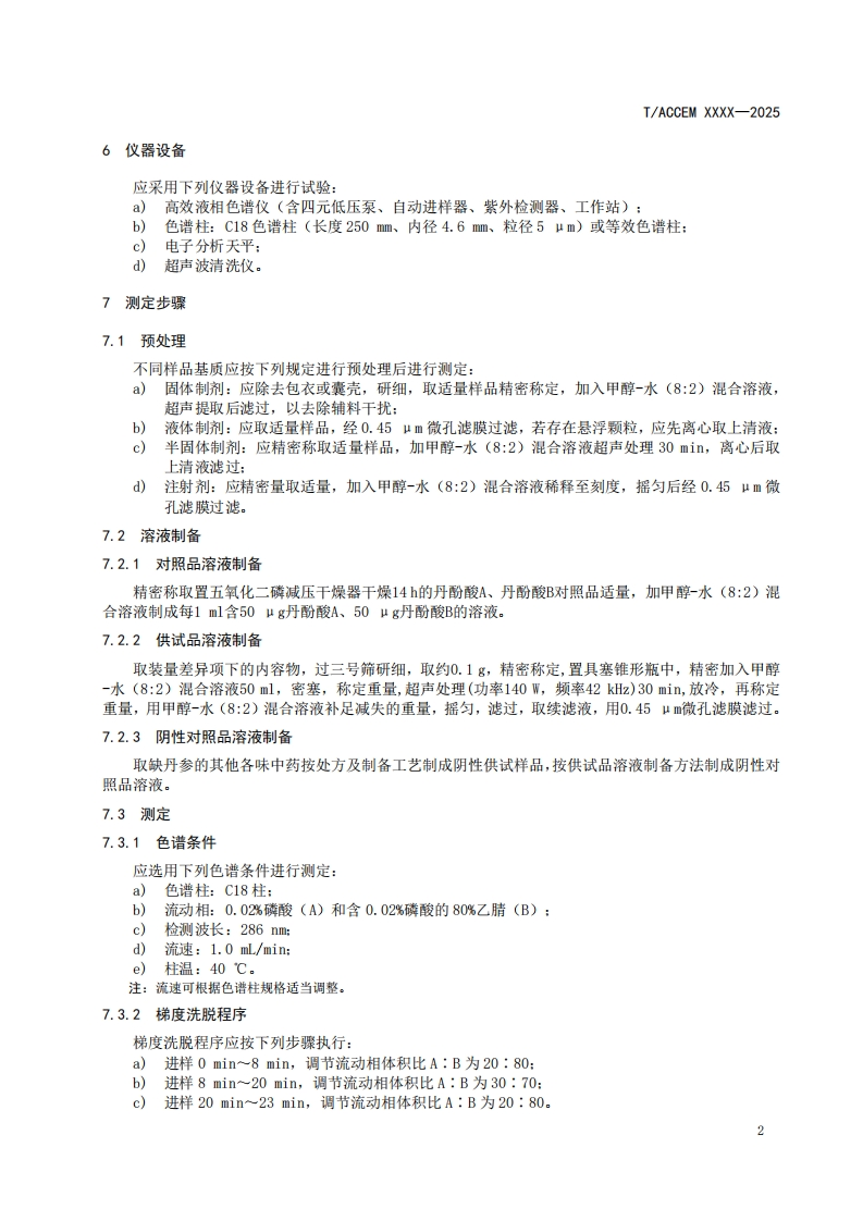 丹酚酸含量测定高效液相色谱法Determinationofsalvianolicacidcontentbyhighperformanceliquidchromatography348072@abc前天发布关注私信1.17MB7页047丹酚酸含量测定高效液相色谱法Determinationofsalvianolicacidcontentbyhighperformanceliquidchromatography此内容为付费资源,请付费后查看¥19¥23黄金会员免费钻石会员免费立即购买您当前未登录!建议登陆后购买,可保存购买订单付费资源 第1页 / 共7页 第2页 / 共7页 第3页 / 共7页 第4页 / 共7页 第5页 / 共7页 试读已结束,还剩2页,您可下载完整版后进行离线阅读 THE END标准规范 文本预览 ICS71.080.40CCS G 16TACCEM团体标准T/ACCEM XXXX-2025丹酚酸含量测定高效液相色谱法Determination of salvianolic acid content by high performance liquidchromatography(征求意见稿)2025-Xx-XX发布2025-Xx-XX实施中国商业企业管理协会发布 查看更多 收起部分 喜欢就支持一下吧收藏
