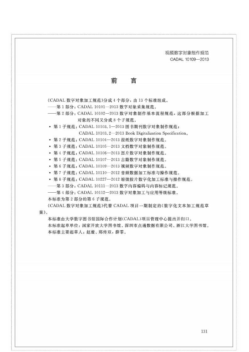 付象制作规范视频数字_SpecifieationfVideoDigitization348072@abc昨天发布关注私信7.22MB13页031付象制作规范视频数字_SpecifieationfVideoDigitization此内容为付费资源,请付费后查看¥19¥23黄金会员免费钻石会员免费立即购买您当前未登录!建议登陆后购买,可保存购买订单付费资源 第1页 / 共13页 第2页 / 共13页 第3页 / 共13页 第4页 / 共13页 第5页 / 共13页 试读已结束,还剩8页,您可下载完整版后进行离线阅读 THE END标准规范 文本预览 1CS01.140.20A14C A D A L项目标准CADAL10109-2013视频数字对象制作规范Specification of Video Digitization第二稿2013-10-152013-10-15发布2013-10-16实施CADAL项目管理中心发布金旭照排五校样开本:787×1092成品:185mm×260mm版芯:39字×39行行距:*2正文字体号:5SS2014.12.4 查看更多 收起部分 喜欢就支持一下吧收藏
