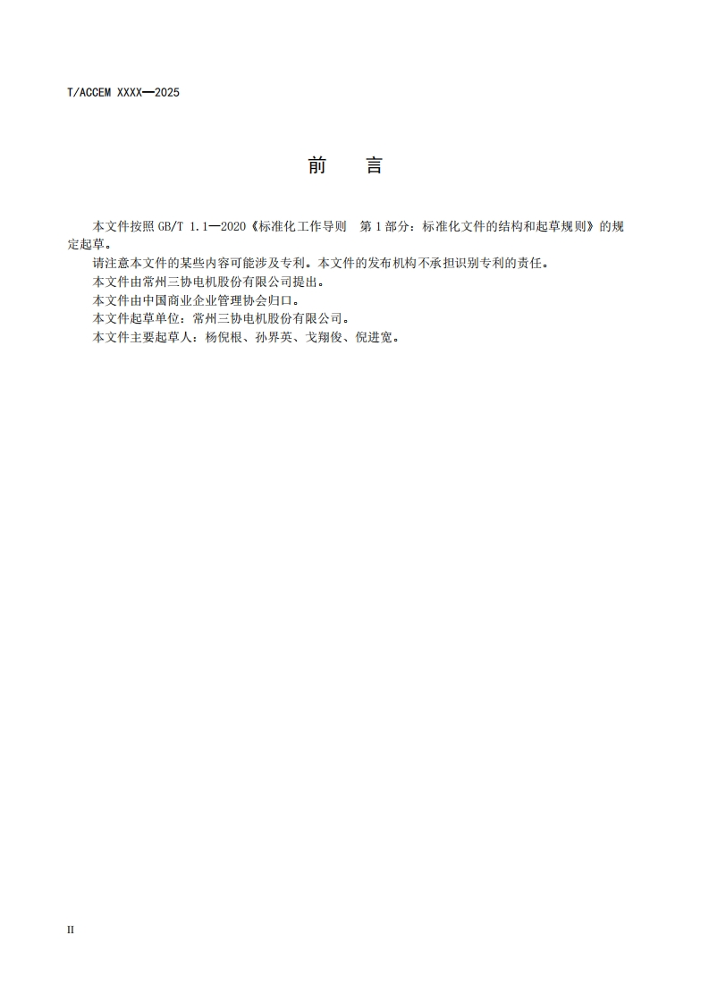 低压大电流无刷电机通用技术条件Generaltechnicalspecificationsforlow-voltagehigh-currentbrushlessmotors348072@abc昨天发布关注私信0.36MB14页040低压大电流无刷电机通用技术条件Generaltechnicalspecificationsforlow-voltagehigh-currentbrushlessmotors此内容为付费资源,请付费后查看¥19¥23黄金会员免费钻石会员免费立即购买您当前未登录!建议登陆后购买,可保存购买订单付费资源 第1页 / 共14页 第2页 / 共14页 第3页 / 共14页 第4页 / 共14页 第5页 / 共14页 试读已结束,还剩9页,您可下载完整版后进行离线阅读 THE END标准规范 文本预览 ICS29.160CCS K 20「/ACCEM团体标准T/ACCEM XXXX-2025低压大电流无刷电机通用技术条件General technical specifications for low-voltage high-current brushless motors(征求意见稿)2025-XX-XX发布2025-XX-XX实施中国商业企业管理协会发布 查看更多 收起部分 喜欢就支持一下吧收藏