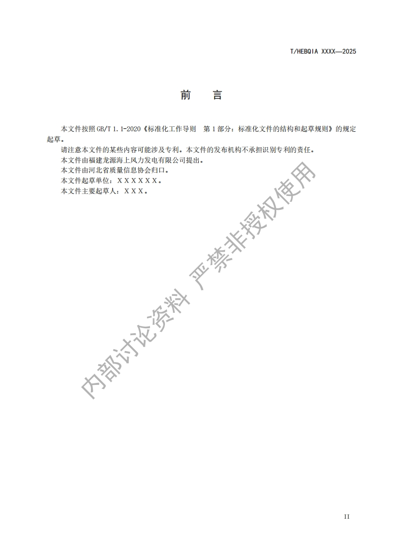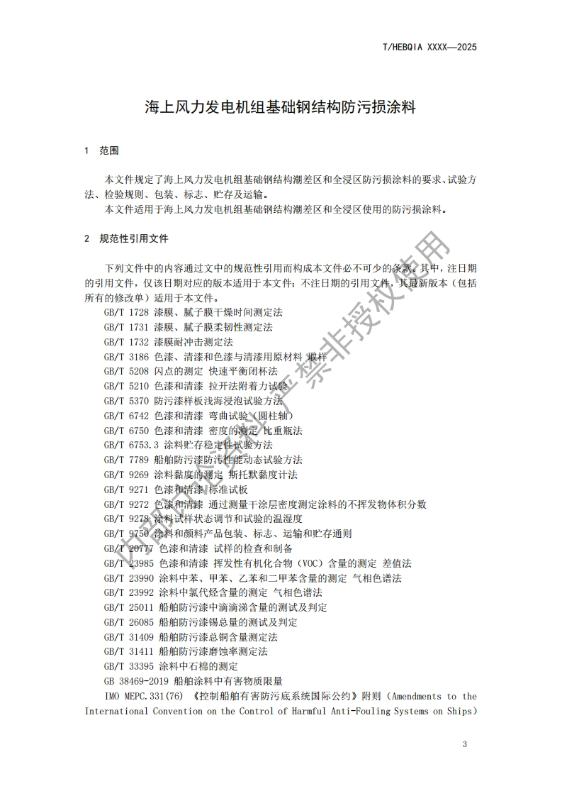 使用海上风力发电机组基础钢结构防污损涂料Coatingofanti-foulingcoatingsforoffshorewindturbinebasicsteelstructure论资了征求意见稿)348072@abc22小时前发布关注私信0.37MB13页041使用海上风力发电机组基础钢结构防污损涂料Coatingofanti-foulingcoatingsforoffshorewindturbinebasicsteelstructure论资了征求意见稿)此内容为付费资源,请付费后查看¥19¥23黄金会员免费钻石会员免费立即购买您当前未登录!建议登陆后购买,可保存购买订单付费资源 第1页 / 共13页 第2页 / 共13页 第3页 / 共13页 第4页 / 共13页 第5页 / 共13页 试读已结束,还剩8页,您可下载完整版后进行离线阅读 THE END标准规范 文本预览 ICS22.220.99CCS K 81T/HEBQIA团体标准T/HEBQIA XXXX-2025叔使用海上风力发电机组基础钢结构防污损涂料Coating of anti-fouling coatings for offshore wind turbine basic steel structure内部讨论资料严求意见稿)2025-XX-XX发布2025-XX-XX实施河北省质量信息协会发布 查看更多 收起部分 喜欢就支持一下吧收藏