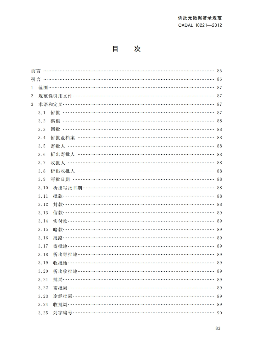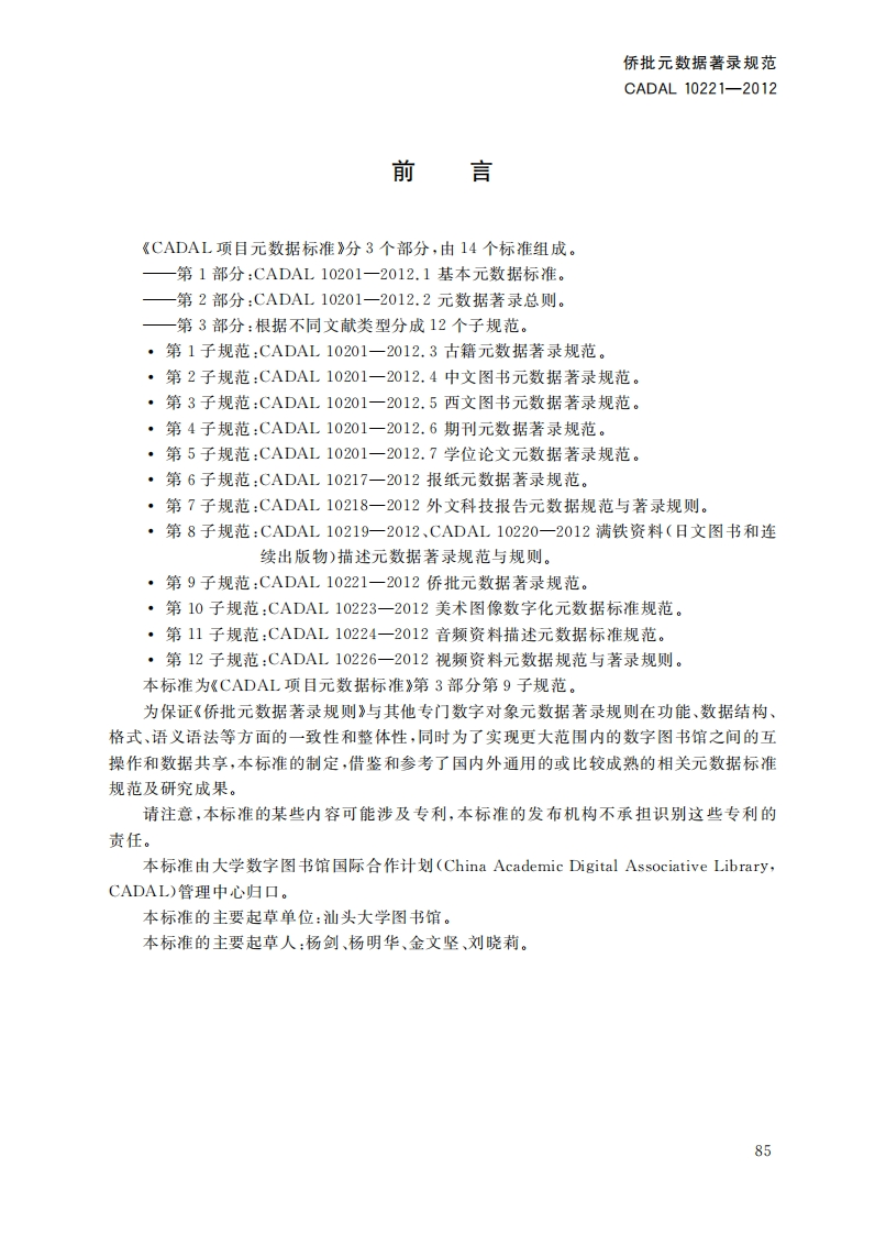 侨批元数据著录规范OiaoPiMetadataatalogingRules第一稿348072@abc9小时前发布关注私信1.84MB32页025侨批元数据著录规范OiaoPiMetadataatalogingRules第一稿此内容为付费资源,请付费后查看¥19¥23黄金会员免费钻石会员免费立即购买您当前未登录!建议登陆后购买,可保存购买订单付费资源 第1页 / 共32页 第2页 / 共32页 第3页 / 共32页 第4页 / 共32页 第5页 / 共32页 试读已结束,还剩27页,您可下载完整版后进行离线阅读 THE END标准规范 文本预览 10S01.140.20A14C A D A L项目标准CADAL10221-2012侨批元数据著录规范QiaoPi Metadata Cataloging Rules第一稿201205-08发布20120509实施CADAL项目管理中心发布 查看更多 收起部分 喜欢就支持一下吧收藏