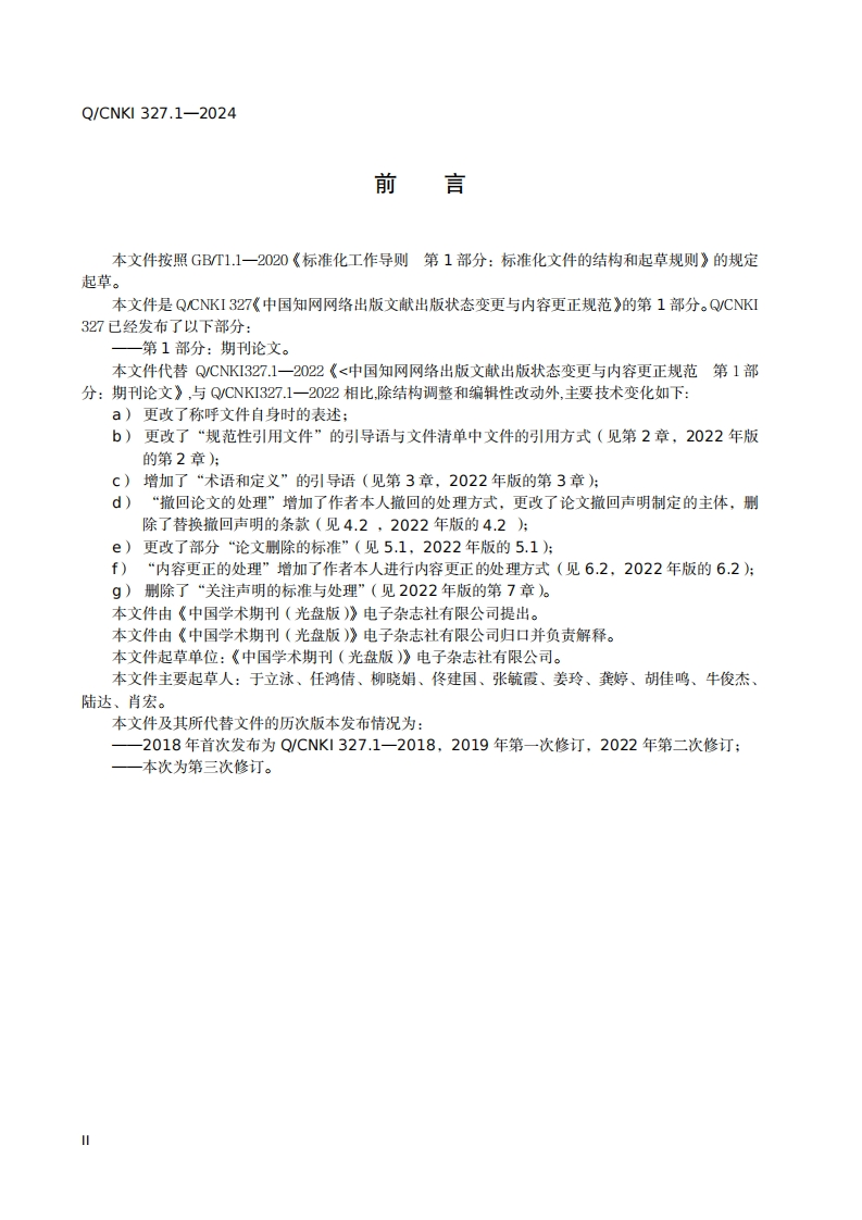 出版状态变更与内容更正规范348072@abc2小时前发布关注私信0.15MB13页046出版状态变更与内容更正规范此内容为付费资源,请付费后查看¥19¥23黄金会员免费钻石会员免费立即购买您当前未登录!建议登陆后购买,可保存购买订单付费资源 第1页 / 共13页 第2页 / 共13页 第3页 / 共13页 第4页 / 共13页 第5页 / 共13页 试读已结束,还剩8页,您可下载完整版后进行离线阅读 THE END标准规范 文本预览 Q/CNKI《中国学术期刊(光盘版)》电子杂志社有限公司企业标准Q/CNKI327.1-2024代替Q/CNK1327.1一2022中国知网网络出版文献出版状态变更与内容更正规范第1部分:期刊论文2024-12-31发布2024-12-31实施《中国学术期刊(光盘版)》电子杂志社有限公司发布 查看更多 收起部分 喜欢就支持一下吧收藏