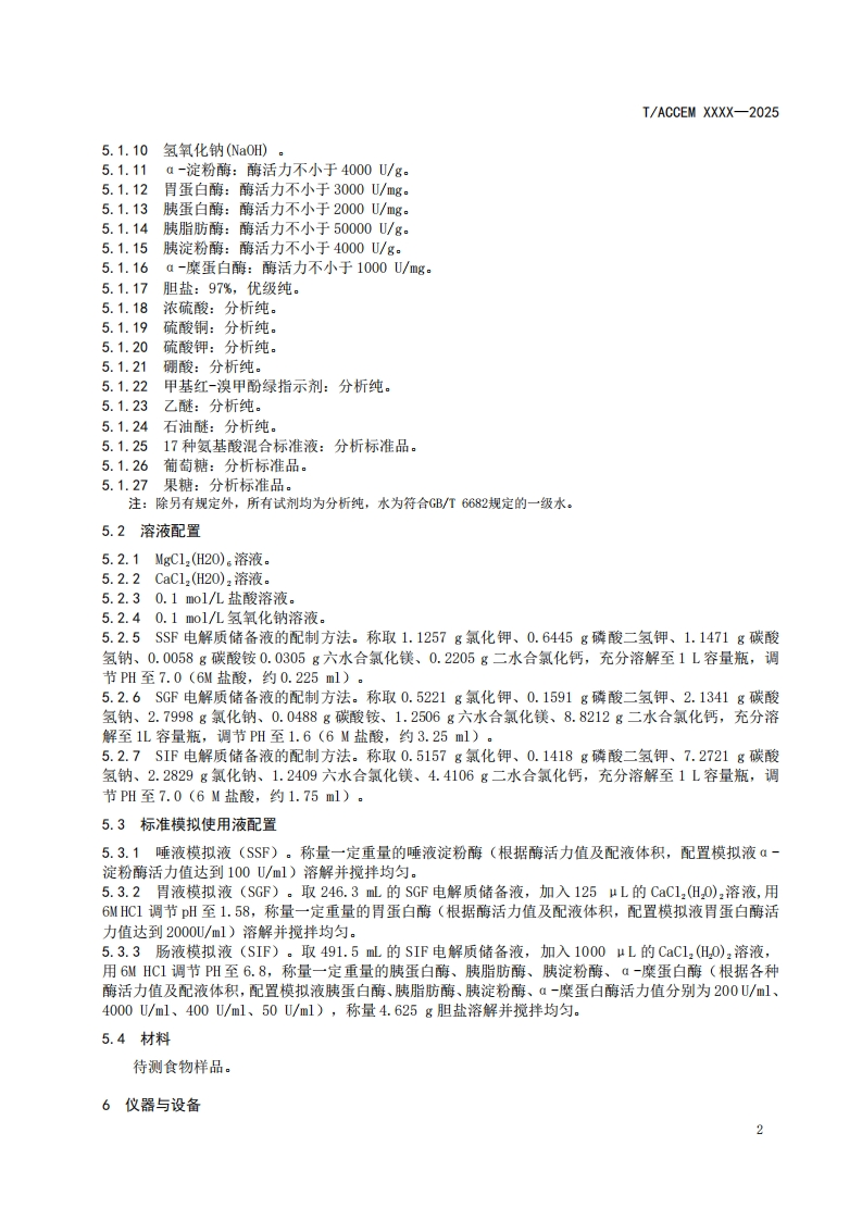 动态体外消化系统检测通则Generalrulesfordynamicinvitrodigestivesystemtesting348072@abc2小时前发布关注私信1.28MB15页024动态体外消化系统检测通则Generalrulesfordynamicinvitrodigestivesystemtesting此内容为付费资源,请付费后查看¥19¥23黄金会员免费钻石会员免费立即购买您当前未登录!建议登陆后购买,可保存购买订单付费资源 第1页 / 共15页 第2页 / 共15页 第3页 / 共15页 第4页 / 共15页 第5页 / 共15页 试读已结束,还剩10页,您可下载完整版后进行离线阅读 THE END标准规范 文本预览 ICSccsT/ACCEM团体标准T/ACCEM XXXX-2025动态体外消化系统检测通测General rules for dynamic in vitro digestive system testing(征求意见稿)2025-Xx-XX发布2025-Xx-XX实施中国商业企业管理协会发布 查看更多 收起部分 喜欢就支持一下吧收藏