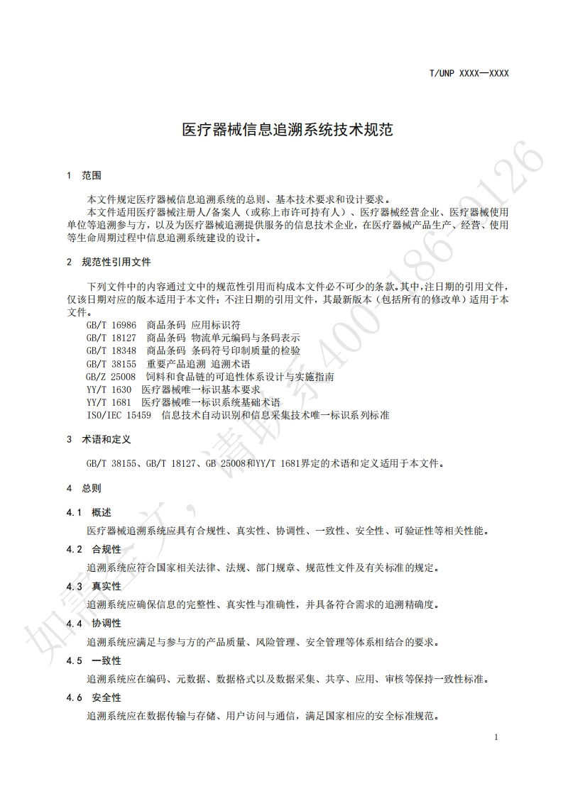 医疗器械信息追溯系统技术规范TechnicalSpecificationsforedicalDeviceInformationTraceabilitySystem请聍348072@abc8小时前发布关注私信0.20MB5页023医疗器械信息追溯系统技术规范TechnicalSpecificationsforedicalDeviceInformationTraceabilitySystem请聍此内容为付费资源,请付费后查看¥19¥23黄金会员免费钻石会员免费立即购买您当前未登录!建议登陆后购买,可保存购买订单付费资源 第1页 / 共5页 第2页 / 共5页 第3页 / 共5页 第4页 / 共5页 第5页 / 共5页 已完成全部阅读,共5页 THE END标准规范 文本预览 ICS35.240.01UNSPSC 43.23.26CCSc07UNP团体标准T/UNP XXXX-XXXX医疗器械信息追溯系统技术规范Technical Specifications for Medical Device Information Traceability System请在提交反债意见时,请将您知道的相关专利连同支持性文件一并附上。如需XXXX-Xx-XX发布XXXX-x-XX实施中国联合国采购促进会发布 查看更多 收起部分 喜欢就支持一下吧收藏