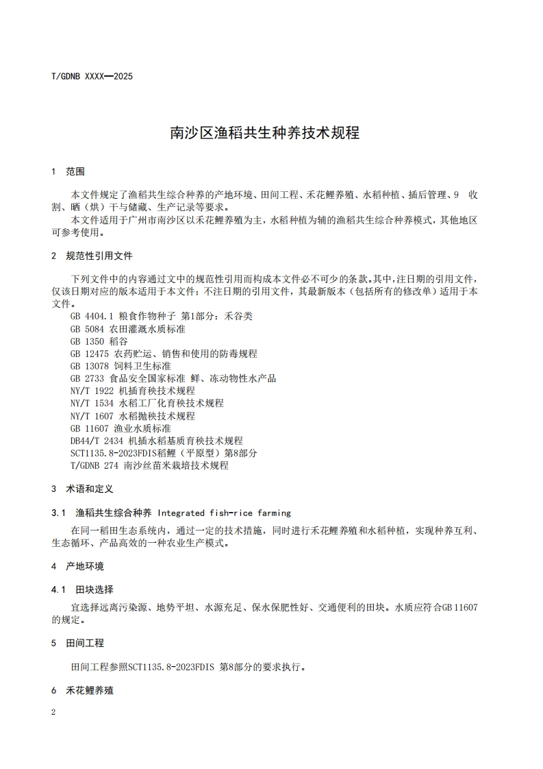 南沙区渔稻共生种养技术规程TechnicalregulationsforIntegratedRice-FishFarminginNanshaDistrict.征求意见稿348072@abc昨天发布关注私信0.23MB7页046南沙区渔稻共生种养技术规程TechnicalregulationsforIntegratedRice-FishFarminginNanshaDistrict.征求意见稿此内容为付费资源,请付费后查看¥19¥23黄金会员免费钻石会员免费立即购买您当前未登录!建议登陆后购买,可保存购买订单付费资源 第1页 / 共7页 第2页 / 共7页 第3页 / 共7页 第4页 / 共7页 第5页 / 共7页 试读已结束,还剩2页,您可下载完整版后进行离线阅读 THE END标准规范 文本预览 10s65.020.20CCS B 05团体标准T/GDNB XXXX-2025南沙区渔稻共生种养技术规程Technical regulations for Integrated Rice-Fish Farming in NanshaDistrict.征求意见稿XXXX-Xx-XX发布XXXX-Xx-XX实施广东省农业标准化协会发布 查看更多 收起部分 喜欢就支持一下吧收藏