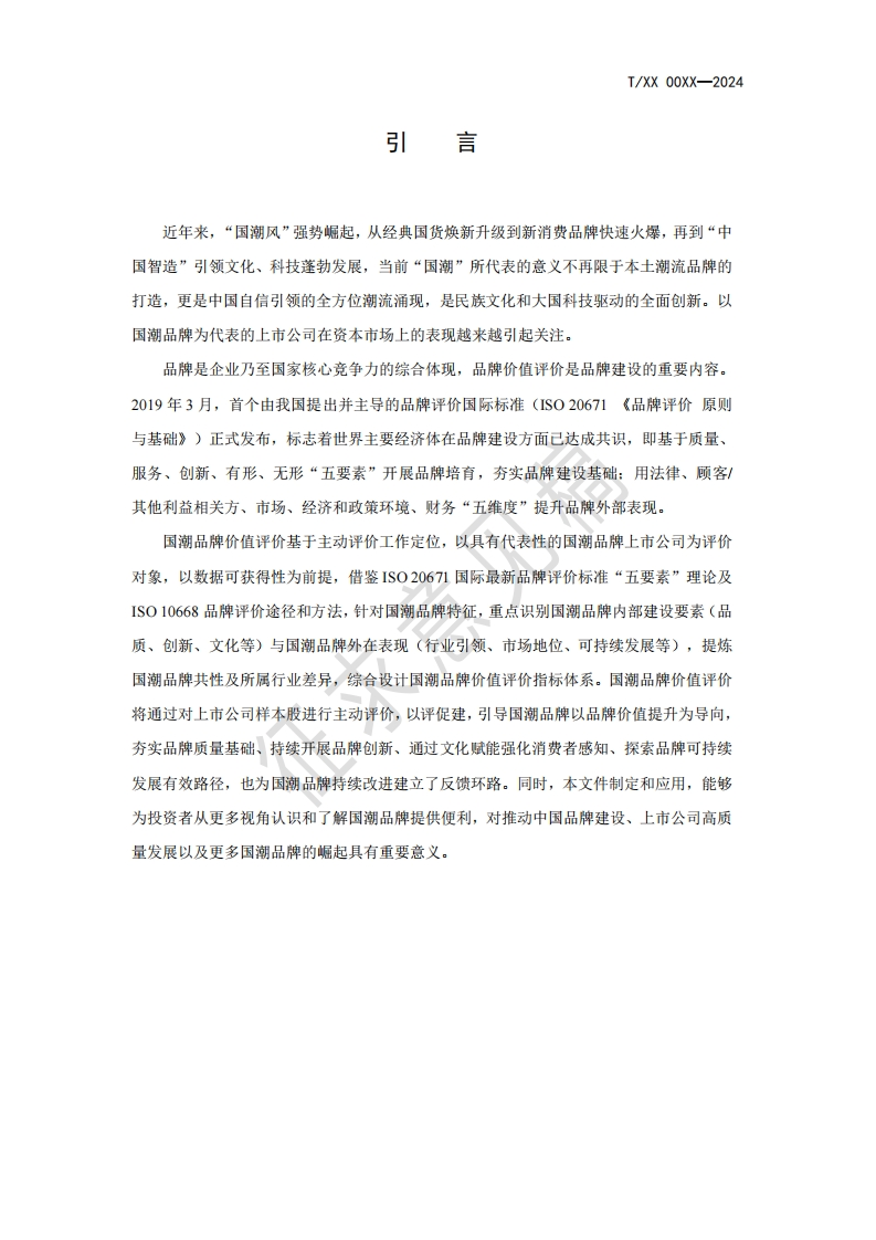国潮品牌价值评价规范348072@abc前天发布关注私信1.43MB12页041国潮品牌价值评价规范此内容为付费资源,请付费后查看¥19¥23黄金会员免费钻石会员免费立即购买您当前未登录!建议登陆后购买,可保存购买订单付费资源 第1页 / 共12页 第2页 / 共12页 第3页 / 共12页 第4页 / 共12页 第5页 / 共12页 试读已结束,还剩7页,您可下载完整版后进行离线阅读 THE END标准规范 文本预览 1CS27.010CCS GO1团体标准T/XX00XX-2024国潮品牌价值评价规范Evaluation specification for China-chic brand求意见稿)征求2024-XX-X发布2024-XX-XX实施中国品牌建设促进会发布 查看更多 收起部分 喜欢就支持一下吧收藏