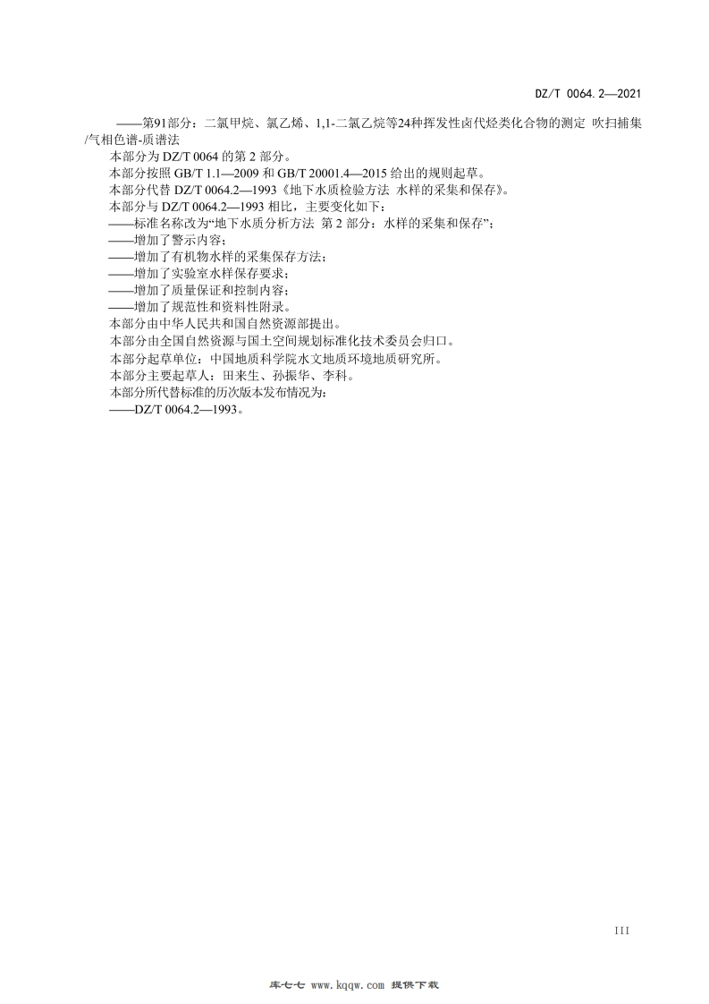 ICS73.080D59DZ中华人民共和国地质矿产行业标准DZ/T0064.2-2021代替DZ/T0064.2-1993地下水质分析方法第2部分:水样的采集和保存Methods for analysis of groundwater quality-Part 2:Collection and preservation of water samples2021-02-22发布2021-07-01实施中华人民共和国自然资源部发布