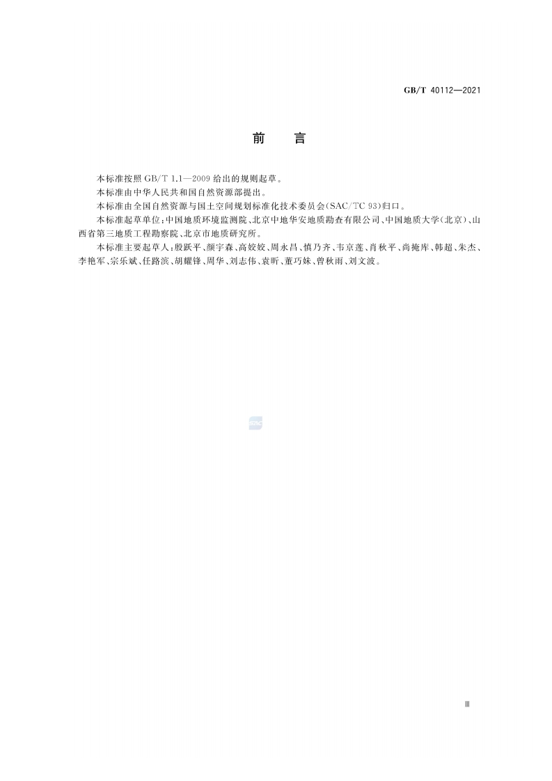 地质灾害危险性评估规范Specificationsforriskassessmentofgeologicalhazard348072@abc前天发布关注私信43.92MB43页030地质灾害危险性评估规范Specificationsforriskassessmentofgeologicalhazard此内容为付费资源,请付费后查看¥19¥23黄金会员免费钻石会员免费立即购买您当前未登录!建议登陆后购买,可保存购买订单付费资源 第1页 / 共43页 第2页 / 共43页 第3页 / 共43页 第4页 / 共43页 第5页 / 共43页 试读已结束,还剩38页,您可下载完整版后进行离线阅读 THE END标准规范 文本预览 I1CS07.060P13GB中华人民共和国国家标准GB/T40112-2021地质灾害危险性评估规范Specifications for risk assessment of geological hazard2021-05-21发布2021-12-01实施国家市场监督管理总局国家标准化管理委员会发布 查看更多 收起部分 喜欢就支持一下吧收藏