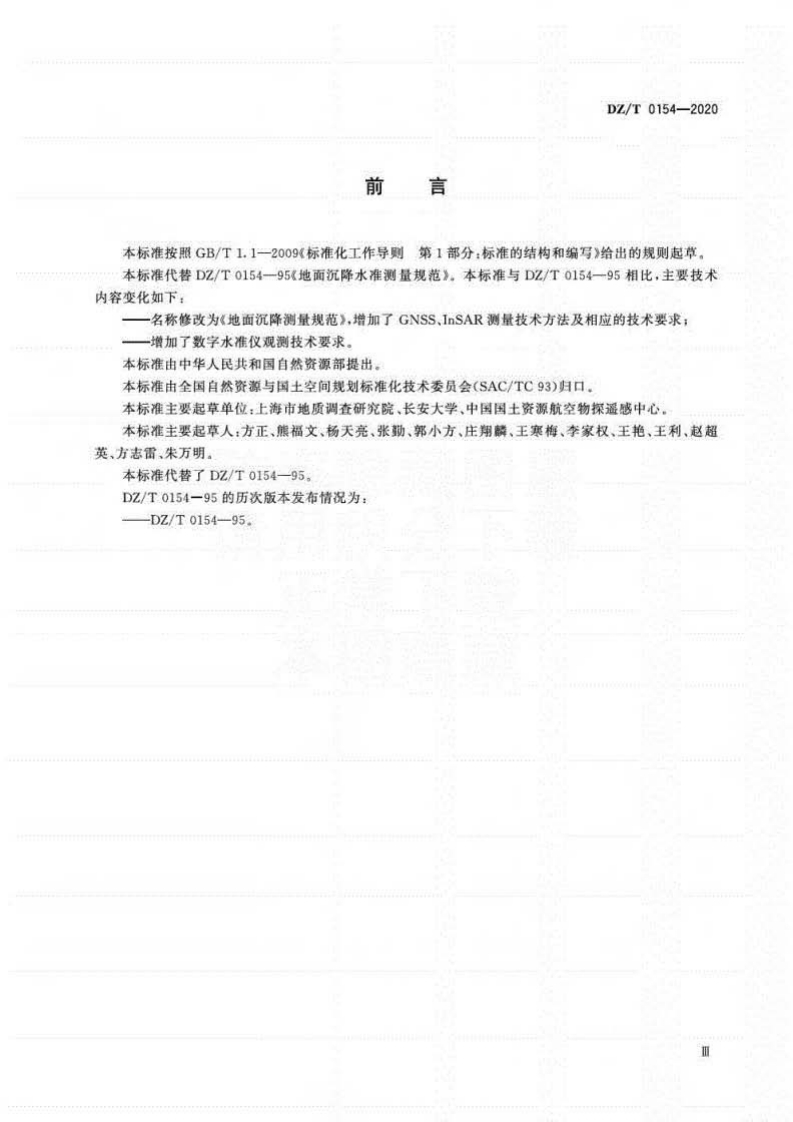 地面沉降测量规范Specificationsforlandsubsidencesurveys348072@abc前天发布关注私信3.23MB43页045地面沉降测量规范Specificationsforlandsubsidencesurveys此内容为付费资源,请付费后查看¥19¥23黄金会员免费钻石会员免费立即购买您当前未登录!建议登陆后购买,可保存购买订单付费资源 第1页 / 共43页 第2页 / 共43页 第3页 / 共43页 第4页 / 共43页 第5页 / 共43页 试读已结束,还剩38页,您可下载完整版后进行离线阅读 THE END标准规范 文本预览 1CS07.040A7602中华人民共和国地质矿产行业标准DZ/T0154-2020代替DZ/T0154一95地面沉降测量规范Specifications for land subsidence surveys2020-06-16发布2020-10-01实施中华人民共和国自然资源部发布 查看更多 收起部分 喜欢就支持一下吧收藏