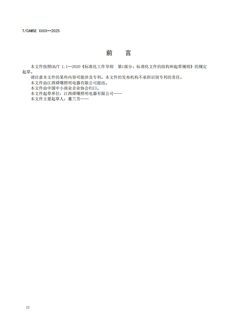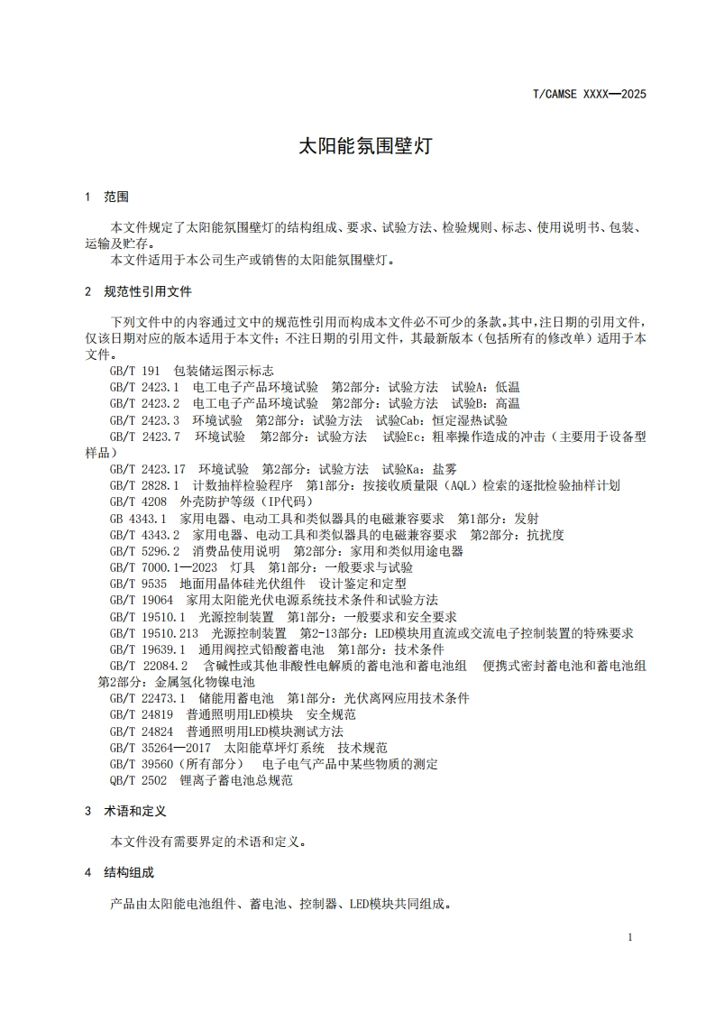 太阳能氛围壁灯Solarambientwalllamp348072@abc前天发布关注私信0.61MB10页049太阳能氛围壁灯Solarambientwalllamp此内容为付费资源,请付费后查看¥19¥23黄金会员免费钻石会员免费立即购买您当前未登录!建议登陆后购买,可保存购买订单付费资源 第1页 / 共10页 第2页 / 共10页 第3页 / 共10页 第4页 / 共10页 第5页 / 共10页 试读已结束,还剩5页,您可下载完整版后进行离线阅读 THE END标准规范 文本预览 ICS27.160CCS F12T/CAMSE团体标准T/CAMSE XXXX-2025太阳能氛围壁灯Solar ambient wall lamp(征求意见稿)2025-Xx-XX发布2025-Xx-XX实施中国中小商业企业协会发布 查看更多 收起部分 喜欢就支持一下吧收藏