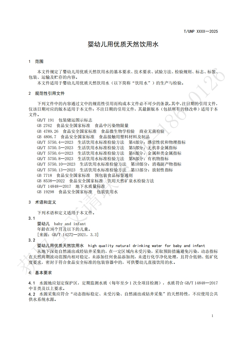 婴幼儿用优质天然饮用水Highqualitynaturaldrinkingwaterforbabyandinfant348072@abc前天发布关注私信0.28MB7页045婴幼儿用优质天然饮用水Highqualitynaturaldrinkingwaterforbabyandinfant此内容为付费资源,请付费后查看¥19¥23黄金会员免费钻石会员免费立即购买您当前未登录!建议登陆后购买,可保存购买订单付费资源 第1页 / 共7页 第2页 / 共7页 第3页 / 共7页 第4页 / 共7页 第5页 / 共7页 试读已结束,还剩2页,您可下载完整版后进行离线阅读 THE END标准规范 文本预览 ICS67.160.20UNSPSC 50.20.23CCSX50UNP团体标准T/UNP XXXX-2025婴幼儿用优质天然饮用水High quality natural drinking water for baby and infant获取全文请联系征求意见稿)2025-Xx-XX发布2025-Xx-XX实施中国联合国采购促进会发布 查看更多 收起部分 喜欢就支持一下吧收藏