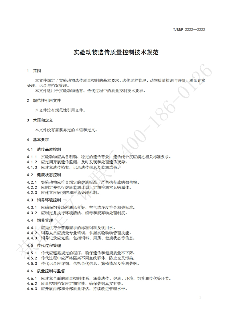 实验动物选传质量控制技术规范SpecificationforqualitycontroltechniquesoflaboratoryanimalbreedingandtransmiSS1on348072@abc前天发布关注私信0.17MB4页049实验动物选传质量控制技术规范SpecificationforqualitycontroltechniquesoflaboratoryanimalbreedingandtransmiSS1on此内容为付费资源,请付费后查看¥19¥23黄金会员免费钻石会员免费立即购买您当前未登录!建议登陆后购买,可保存购买订单付费资源 第1页 / 共4页 第2页 / 共4页 第3页 / 共4页 第4页 / 共4页 已完成全部阅读,共4页 THE END标准规范 文本预览 ICS65.020.30UNSPSC 70.12.16CCSB44UNP团体标准T/UNP XXXX-XXXX实验动物选传质量控制技术规范Specification for quality control techniques of laboratory animal breeding andtransmission文请联在提交反债意见时,请将您知道的相关专利连同支持性文件一并附上。获取XXXX-Xx-XX发布XXXX-x-XX实施中国联合国采购促进会发布 查看更多 收起部分 喜欢就支持一下吧收藏