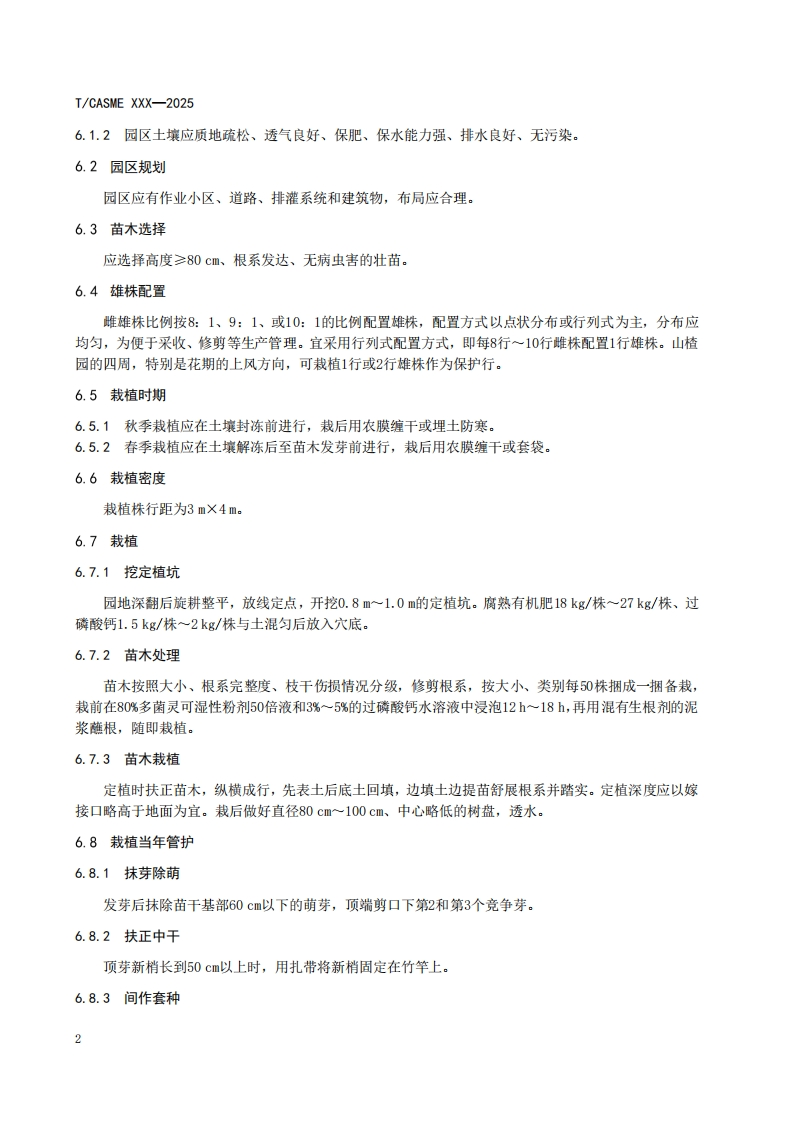 山楂种植园建设与管理规范Constructionandmanagementnormsforhawthornplantations348072@abc前天发布关注私信0.55MB10页038山楂种植园建设与管理规范Constructionandmanagementnormsforhawthornplantations此内容为付费资源,请付费后查看¥19¥23黄金会员免费钻石会员免费立即购买您当前未登录!建议登陆后购买,可保存购买订单付费资源 第1页 / 共10页 第2页 / 共10页 第3页 / 共10页 第4页 / 共10页 第5页 / 共10页 试读已结束,还剩5页,您可下载完整版后进行离线阅读 THE END标准规范 文本预览 ICS65.020.20CCS B05TCASME团体标准T/CASME XXX-2025山楂种植园建设与管理规范Construction and management norms for hawthorn plantations(征求意见稿)2025-XX-XX发布2025-Xx-XX实施中国中小商业企业协会发布 查看更多 收起部分 喜欢就支持一下吧收藏