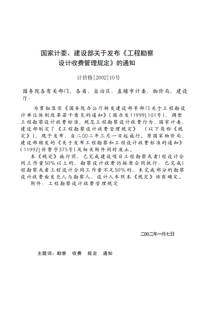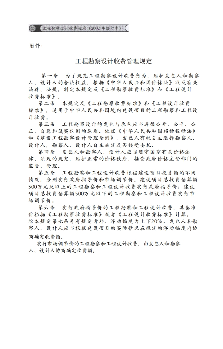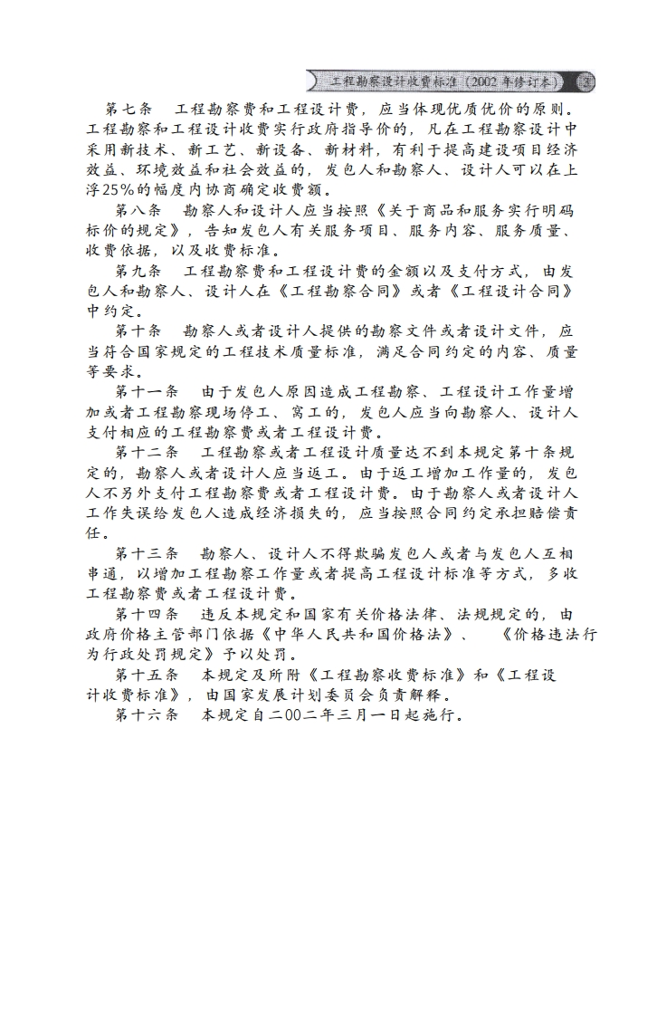 工程勘察设计收费标准348072@abc前天发布关注私信0.84MB102页043工程勘察设计收费标准此内容为付费资源,请付费后查看¥19¥23黄金会员免费钻石会员免费立即购买您当前未登录!建议登陆后购买,可保存购买订单付费资源 第1页 / 共102页 第2页 / 共102页 第3页 / 共102页 第4页 / 共102页 第5页 / 共102页 试读已结束,还剩97页,您可下载完整版后进行离线阅读 THE END标准规范 文本预览 2002年修订本国家发展计划委员会收费标准工程勘察设计建设部GONGCHENGKANCHASHEJISHOUFEIBIAOZHUN中国物价出版社 查看更多 收起部分 喜欢就支持一下吧收藏