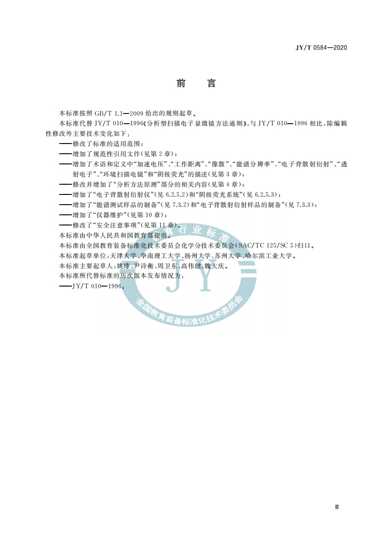 扫描电子显微镜分析方法通则Generalrulesofanalyticalmethodsforscanningelectronmieroscope安348072@abc昨天发布关注私信1.18MB18页036扫描电子显微镜分析方法通则Generalrulesofanalyticalmethodsforscanningelectronmieroscope安此内容为付费资源,请付费后查看¥19¥23黄金会员免费钻石会员免费立即购买您当前未登录!建议登陆后购买,可保存购买订单付费资源 第1页 / 共18页 第2页 / 共18页 第3页 / 共18页 第4页 / 共18页 第5页 / 共18页 试读已结束,还剩13页,您可下载完整版后进行离线阅读 THE END标准规范 文本预览 1CS03.180Y51JY中华人民共和国教育行业标准JY/T0584-2020代替JY/T010一1996扫描电子显微镜分析方法通则General rules of analytical methods for scanning electron microscopeJY全国教育装备标准化技术委员公人2020-09-29发布2020-12-01实施中华人民共和国教育部发布 查看更多 收起部分 喜欢就支持一下吧收藏
