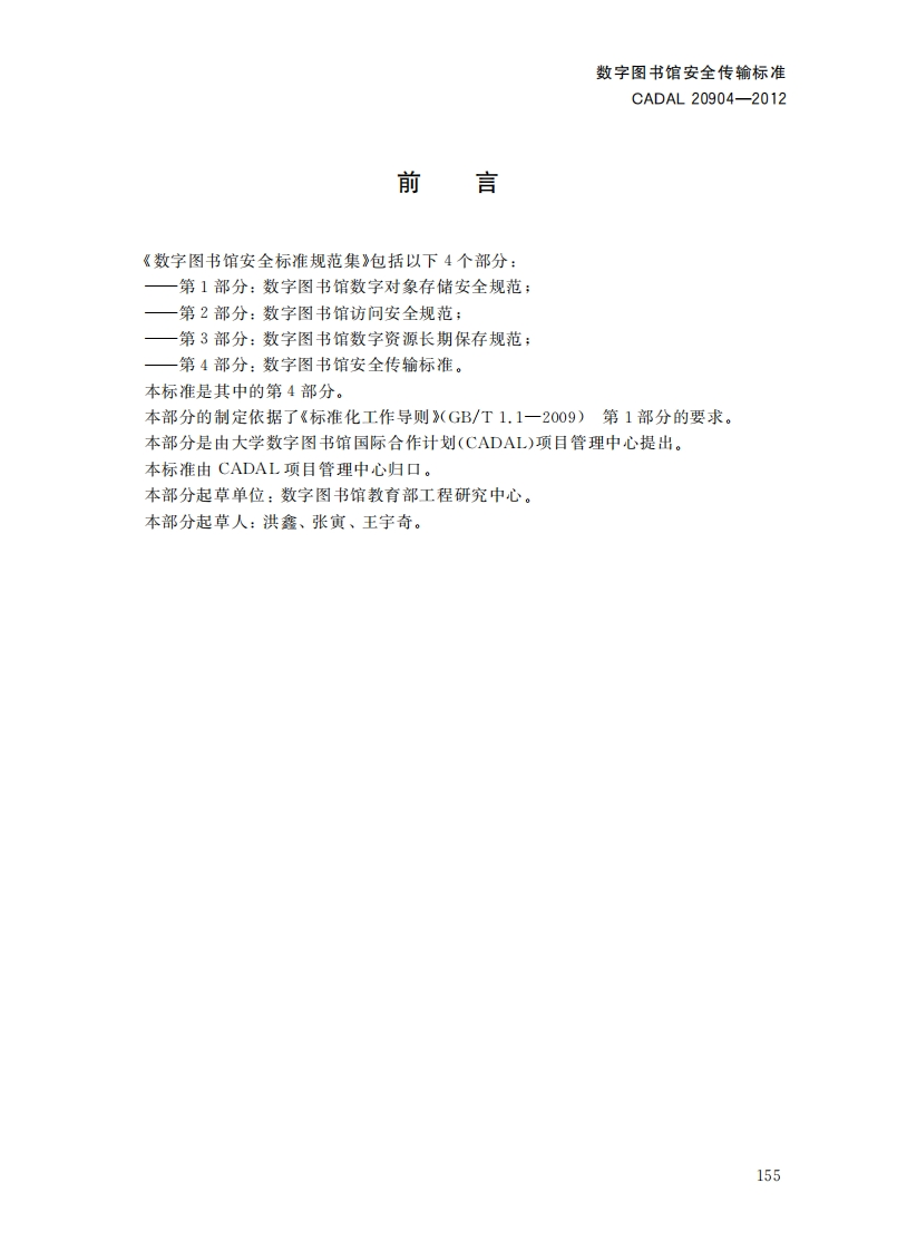 数字图书馆安全传输标准DigitalLibrarySecurityTransportStandards第一稿348072@abc11小时前发布关注私信0.61MB11页049数字图书馆安全传输标准DigitalLibrarySecurityTransportStandards第一稿此内容为付费资源,请付费后查看¥19¥23黄金会员免费钻石会员免费立即购买您当前未登录!建议登陆后购买,可保存购买订单付费资源 第1页 / 共11页 第2页 / 共11页 第3页 / 共11页 第4页 / 共11页 第5页 / 共11页 试读已结束,还剩6页,您可下载完整版后进行离线阅读 THE END标准规范 文本预览 1CS01.140.20A14C A D A L项目标准CADAL20904-2012数字图书馆安全传输标准Digital Library Security Transport Standards第一稿2012-05-08发布201205-09实施CADAL项目管理中心发布 查看更多 收起部分 喜欢就支持一下吧收藏