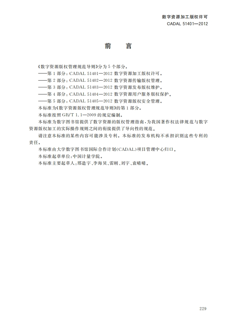 数字资源加工版权许可CopyrightLicenseStandardsofDigitalResourcesProcessing第一稿348072@abc4小时前发布关注私信0.54MB10页045数字资源加工版权许可CopyrightLicenseStandardsofDigitalResourcesProcessing第一稿此内容为付费资源,请付费后查看¥19¥23黄金会员免费钻石会员免费立即购买您当前未登录!建议登陆后购买,可保存购买订单付费资源 第1页 / 共10页 第2页 / 共10页 第3页 / 共10页 第4页 / 共10页 第5页 / 共10页 试读已结束,还剩5页,您可下载完整版后进行离线阅读 THE END标准规范 文本预览 10S01.140.20A14C A D A L项目标准CADAL51401-2012数字资源加工版权许可Copyright License Standards of Digital Resources Processing第一稿201205-08发布20120509实施CADAL项目管理中心发布 查看更多 收起部分 喜欢就支持一下吧收藏