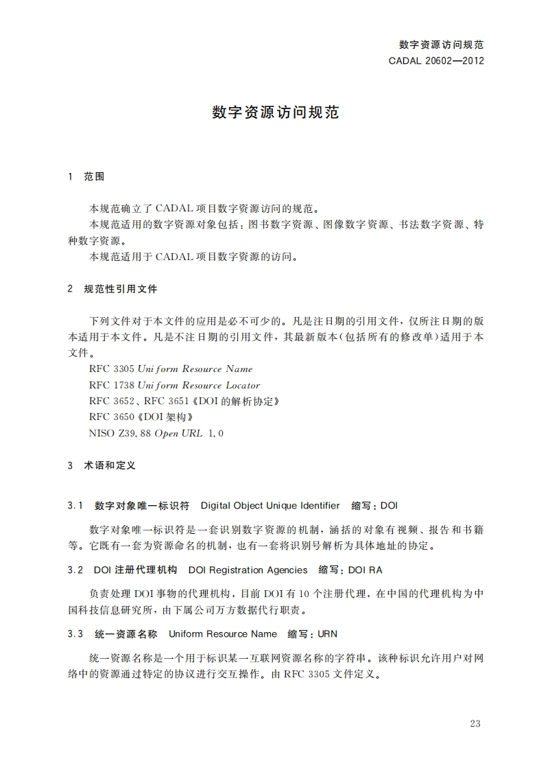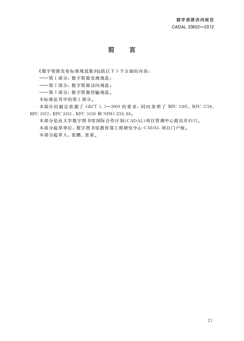 数字资源方问规范cessSpecificationDigitalResources第一稿348072@abc9小时前发布关注私信0.49MB10页035数字资源方问规范cessSpecificationDigitalResources第一稿此内容为付费资源,请付费后查看¥19¥23黄金会员免费钻石会员免费立即购买您当前未登录!建议登陆后购买,可保存购买订单付费资源 第1页 / 共10页 第2页 / 共10页 第3页 / 共10页 第4页 / 共10页 第5页 / 共10页 试读已结束,还剩5页,您可下载完整版后进行离线阅读 THE END标准规范 文本预览 1CS01.140.20A14C A D A L项目标准CADAL20602-2012数字资源访问规范Digital Resources Access Specification第一稿2012-05-08发布201205-09实施CADAL项目管理中心发布 查看更多 收起部分 喜欢就支持一下吧收藏