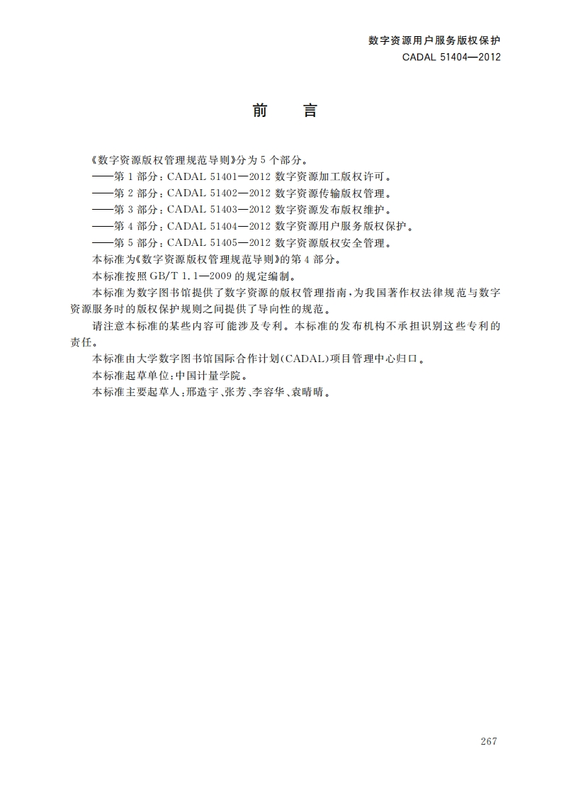 数字资源用户服务版权保护CopyrightProtectionStandardsofDigitalResourcesService第一稿348072@abc12小时前发布关注私信0.68MB12页027数字资源用户服务版权保护CopyrightProtectionStandardsofDigitalResourcesService第一稿此内容为付费资源,请付费后查看¥19¥23黄金会员免费钻石会员免费立即购买您当前未登录!建议登陆后购买,可保存购买订单付费资源 第1页 / 共12页 第2页 / 共12页 第3页 / 共12页 第4页 / 共12页 第5页 / 共12页 试读已结束,还剩7页,您可下载完整版后进行离线阅读 THE END标准规范 文本预览 10S01.140.20A14C A D A L项目标准CADAL51404-2012数字资源用户服务版权保护Copyright Protection Standards of Digital Resources Service第一稿201205-08发布20120509实施CADAL项目管理中心发布 查看更多 收起部分 喜欢就支持一下吧收藏
