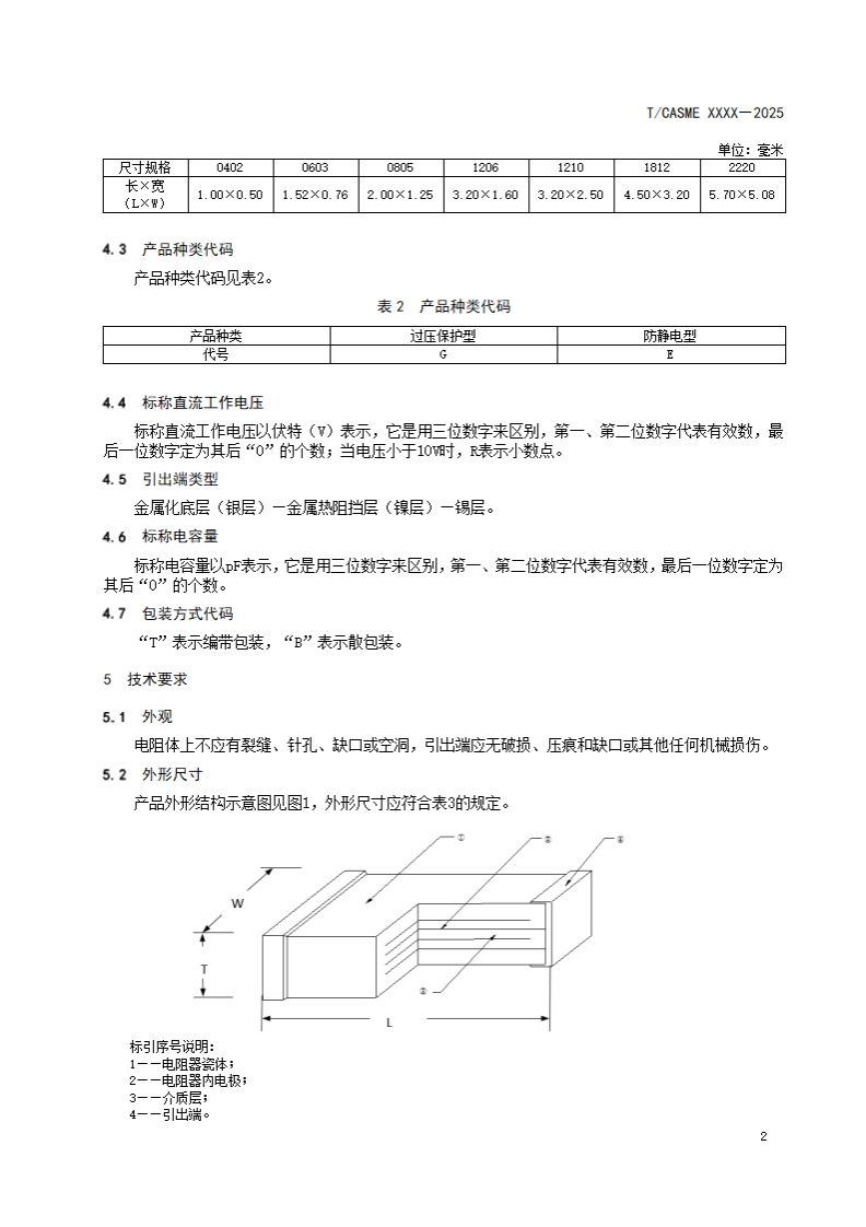 ICS点击此处添加1Cs号CCS点击此处添加CCS号T/CASME团体标准T/CASME XXXX-2025新能源汽车用高温片式多层瓷介压敏电阻器技术规范Detailed specification for high-temperature chip multilayer ceramic varistors for newenergy vehicles(征求意见稿)在提交反馈意见时,请将您知道的相联专利连同支持性文件一并附上。2025-XX-XX发布2025-XX-XX实施中国中小商业企业协会发布