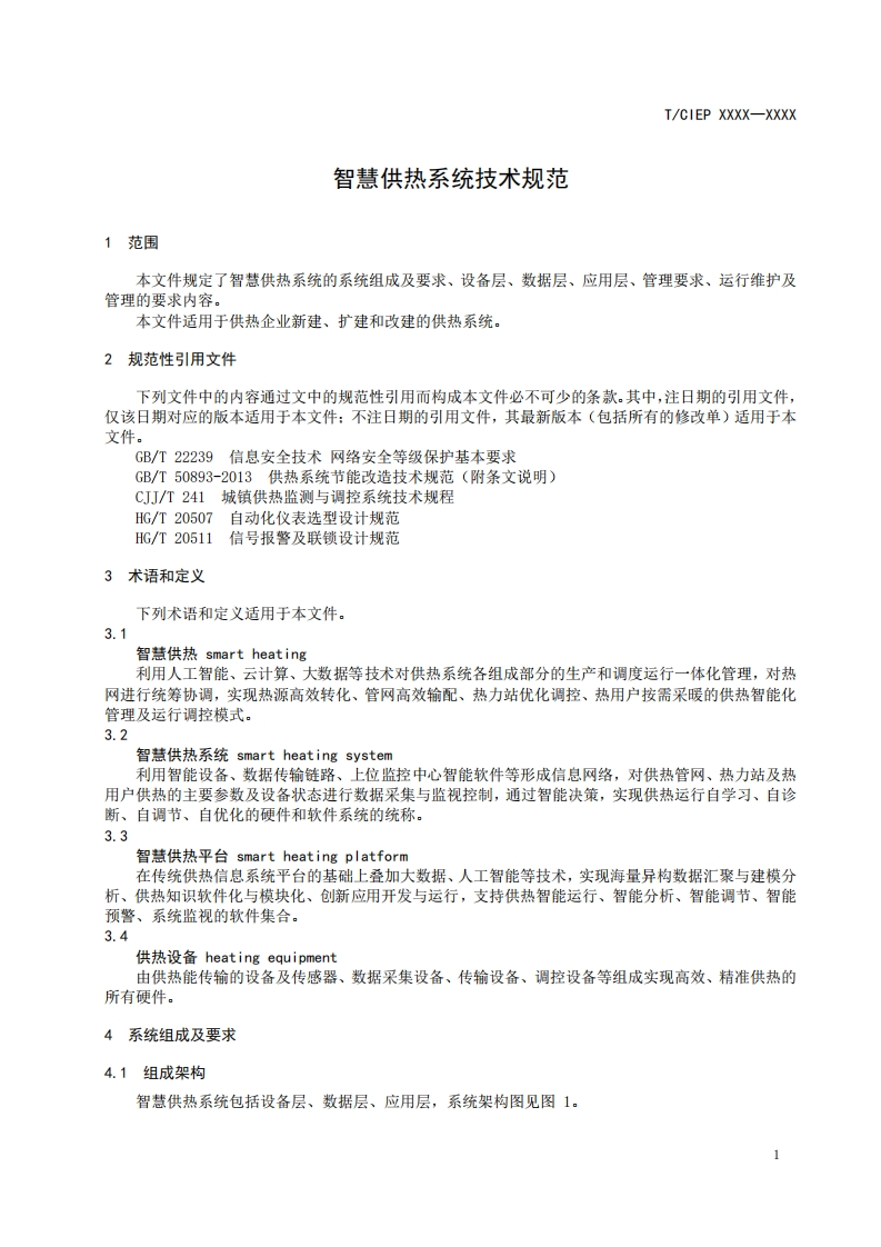 智慧供热系统技术规范Technicalspecificationsforintelligentheatingsystems348072@abc昨天发布关注私信0.29MB11页040智慧供热系统技术规范Technicalspecificationsforintelligentheatingsystems此内容为付费资源,请付费后查看¥19¥23黄金会员免费钻石会员免费立即购买您当前未登录!建议登陆后购买,可保存购买订单付费资源 第1页 / 共11页 第2页 / 共11页 第3页 / 共11页 第4页 / 共11页 第5页 / 共11页 试读已结束,还剩6页,您可下载完整版后进行离线阅读 THE END标准规范 文本预览 ICS91.140.10CCS P 46TCIEP中国工业环保促进会团体标准T/CIEP XXXX-XXXX智慧供热系统技术规范Technical specifications for intelligent heating systems(征求意见稿)XXXX-Xx-XX发布XXXX-Xx-XX实施中国工业环保促进会发布 查看更多 收起部分 喜欢就支持一下吧收藏