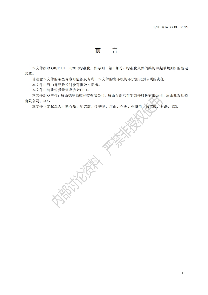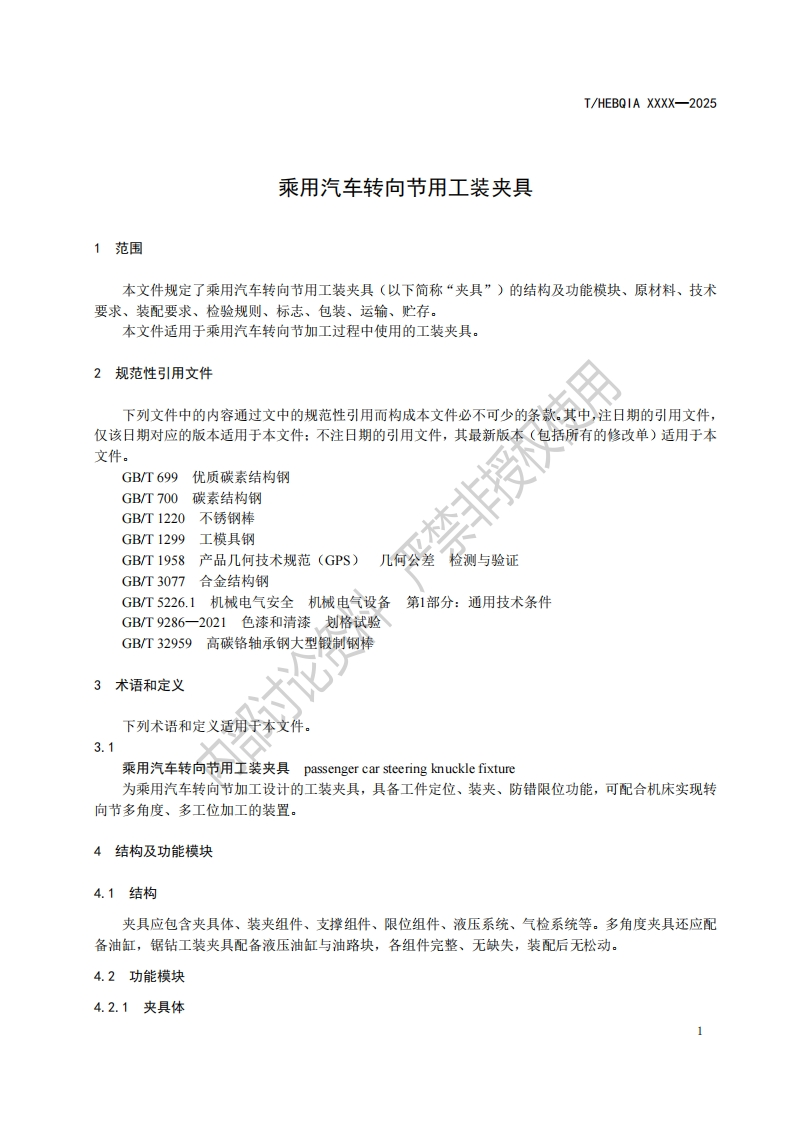 权使用乘用汽车转向节用立装夹具Passengercarsteeringknucklefixture部讨348072@abc昨天发布关注私信0.57MB12页047权使用乘用汽车转向节用立装夹具Passengercarsteeringknucklefixture部讨此内容为付费资源,请付费后查看¥19¥23黄金会员免费钻石会员免费立即购买您当前未登录!建议登陆后购买,可保存购买订单付费资源 第1页 / 共12页 第2页 / 共12页 第3页 / 共12页 第4页 / 共12页 第5页 / 共12页 试读已结束,还剩7页,您可下载完整版后进行离线阅读 THE END标准规范 文本预览 1C525.060.20CCS L 97THEBOIA团体标准T/HEBQIA XXXX-2025权使用乘用汽车转向节用工装夹具Passenger car steering knuckle fixture闪高3十地中2025-XX-XX发布2025-XX-XX实施河北省质量信息协会发布 查看更多 收起部分 喜欢就支持一下吧收藏