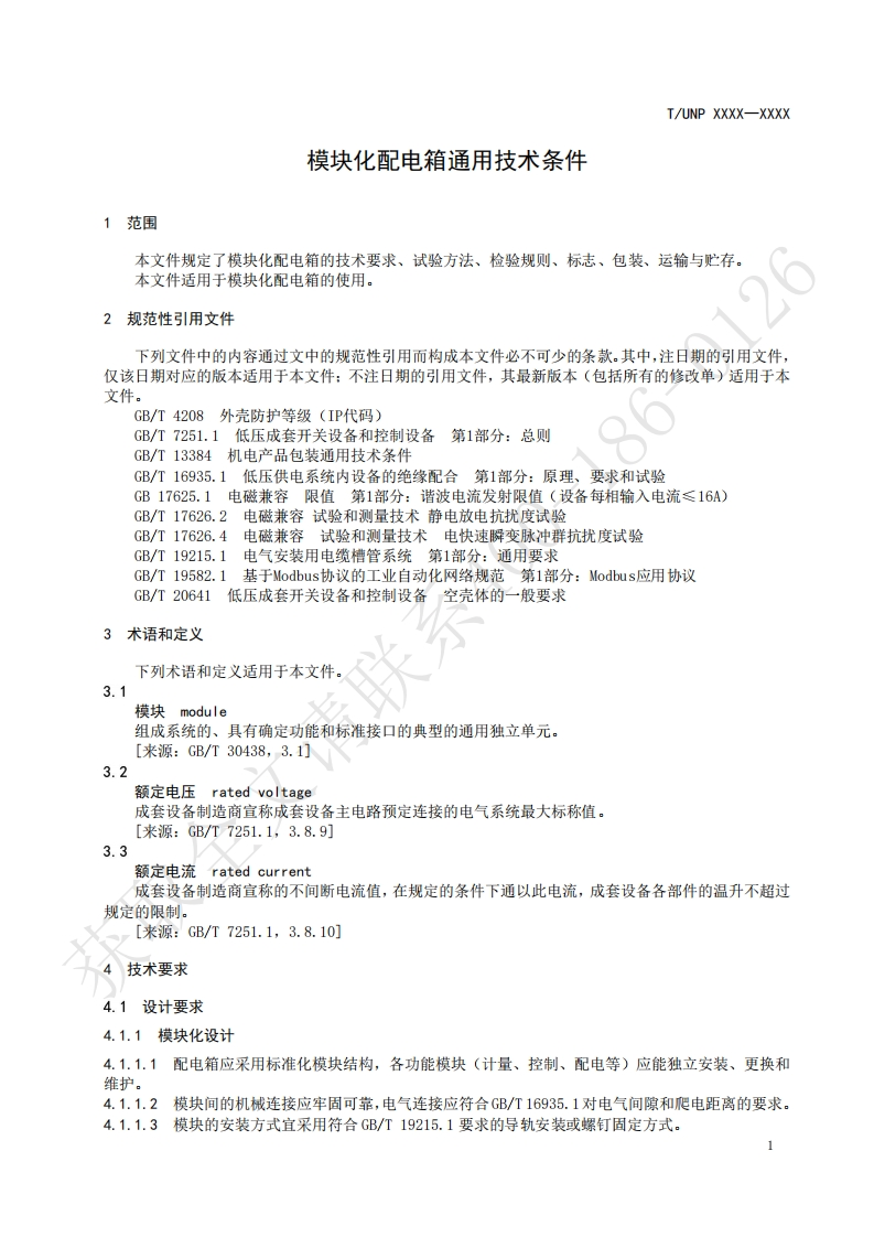模块化配电箱通用技术条件Generaltechnicalspecificationformodulardistributionboxes348072@abc7小时前发布关注私信0.38MB8页044模块化配电箱通用技术条件Generaltechnicalspecificationformodulardistributionboxes此内容为付费资源,请付费后查看¥19¥23黄金会员免费钻石会员免费立即购买您当前未登录!建议登陆后购买,可保存购买订单付费资源 第1页 / 共8页 第2页 / 共8页 第3页 / 共8页 第4页 / 共8页 第5页 / 共8页 试读已结束,还剩3页,您可下载完整版后进行离线阅读 THE END标准规范 文本预览 ICS29.240.30UNSPSC 32.15.19CCSP63UNP团体标准T/UNP XXXX-XXXX模块化配电箱通用技术条件General technical specification for modular distribution boxes获取全文请联系征求意见稿)XXXx-Xx-XX发布XXXX-x-XX实施中国联合国采购促进会发布 查看更多 收起部分 喜欢就支持一下吧收藏