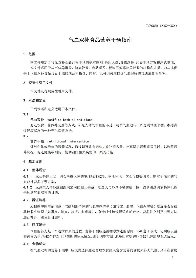 气血双补食品营养干预指南Guidelinesfornutritionalinterventionofgiandblooddual-tonifyingfoods348072@abc3小时前发布关注私信0.56MB8页021气血双补食品营养干预指南Guidelinesfornutritionalinterventionofgiandblooddual-tonifyingfoods此内容为付费资源,请付费后查看¥19¥23黄金会员免费钻石会员免费立即购买您当前未登录!建议登陆后购买,可保存购买订单付费资源 第1页 / 共8页 第2页 / 共8页 第3页 / 共8页 第4页 / 共8页 第5页 / 共8页 试读已结束,还剩3页,您可下载完整版后进行离线阅读 THE END标准规范 文本预览 ICS67.040CCS C 55ACCEM团体标准T/ACCEM XXXX-XXXX气血双补食品营养干预指南Guidelines fornutritional intervention of qi and blood dual-tonifying foods(征求意见稿)在提交反债意见时,请将您知道的相关专利连同支持性文件一并附上。XXXX-Xx-XX发布XXXX-x-X实施中国商业企业管理协会发布 查看更多 收起部分 喜欢就支持一下吧收藏