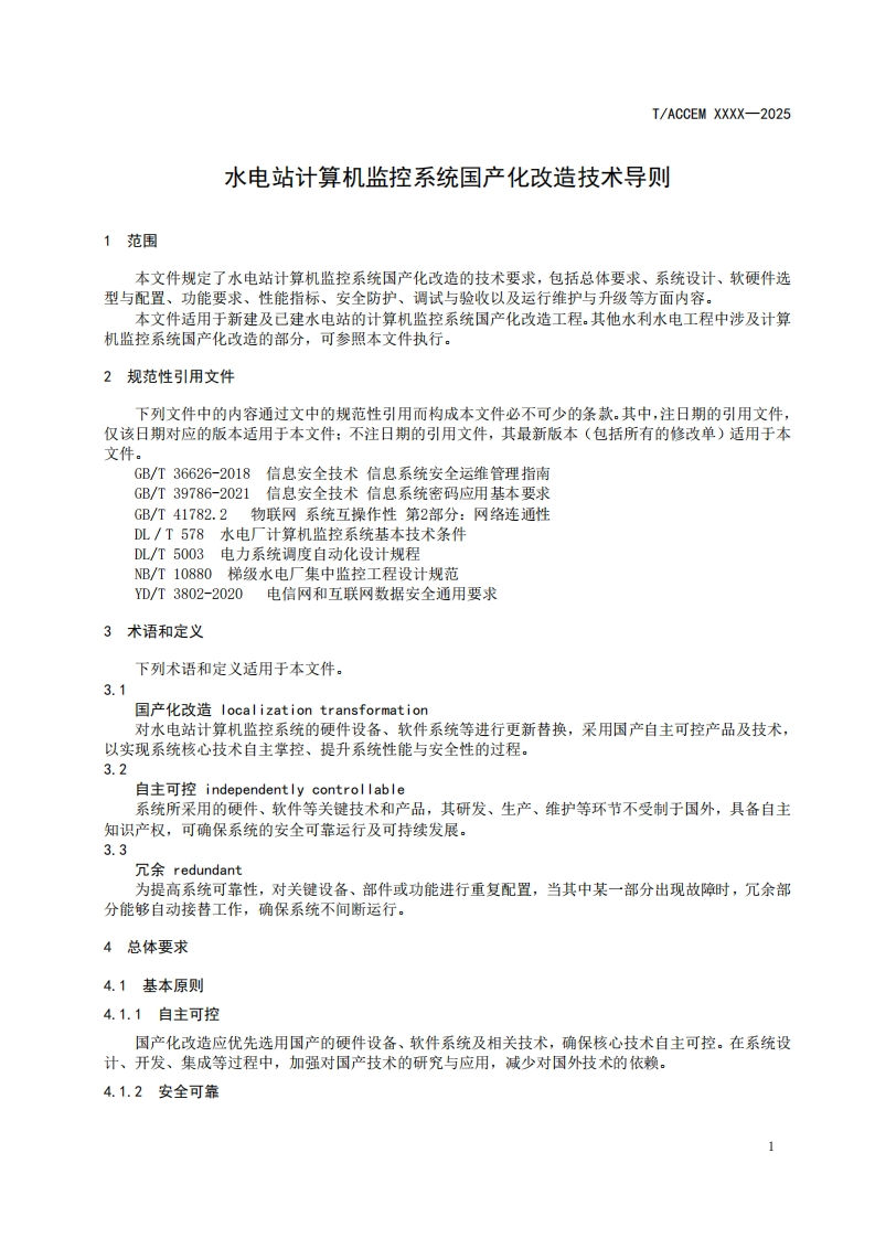ICS35.020CCS L 04T/ACCEM团体标准T/ACCEM XXXX-2025水电站计算机监控系统国产化改造技术导则Technical guidelines for localization transformation of computer monitoring systemin hydropower stations(征求意见稿)2025-Xx-XX发布2025-Xx-XX实施中国商业企业管理协会发布