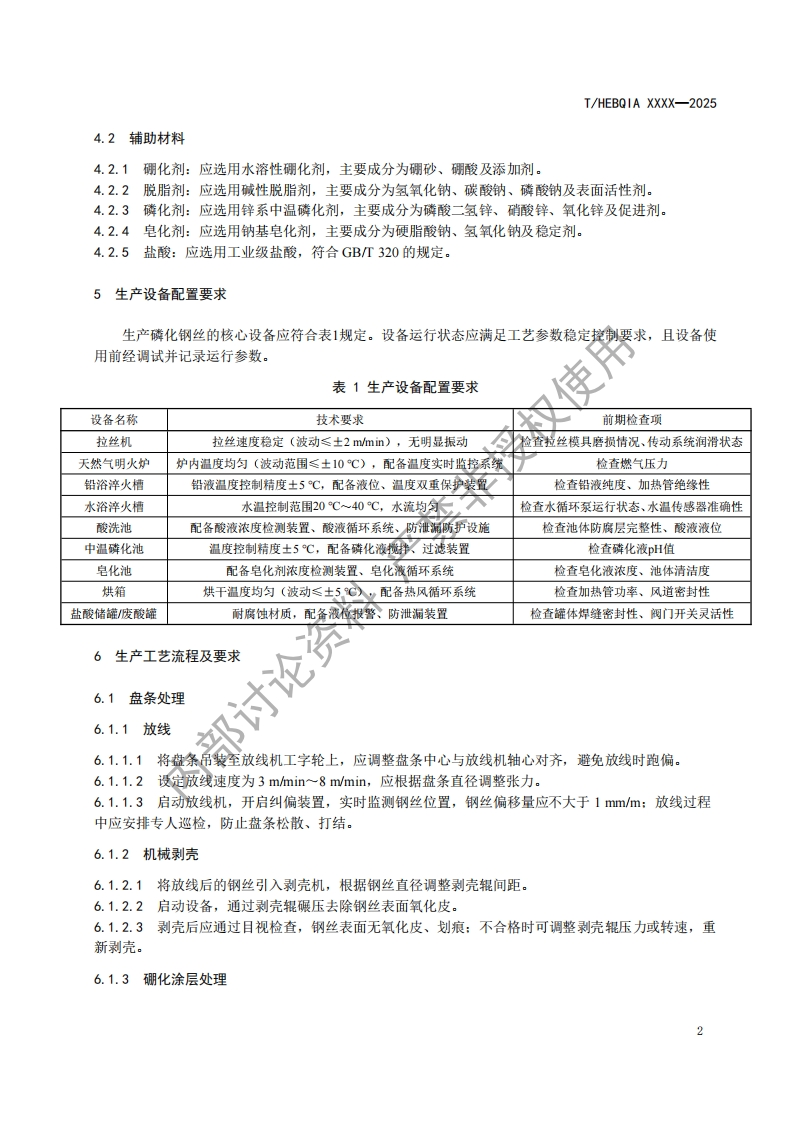 汉使用磷化钢丝生产全流程技术控制规范echnicalcontrolspecificationsfortheentireproductionprocessofphosphatedsteelwire寸论资348072@abc10小时前发布关注私信0.35MB9页032汉使用磷化钢丝生产全流程技术控制规范echnicalcontrolspecificationsfortheentireproductionprocessofphosphatedsteelwire寸论资此内容为付费资源,请付费后查看¥19¥23黄金会员免费钻石会员免费立即购买您当前未登录!建议登陆后购买,可保存购买订单付费资源 第1页 / 共9页 第2页 / 共9页 第3页 / 共9页 第4页 / 共9页 第5页 / 共9页 试读已结束,还剩4页,您可下载完整版后进行离线阅读 THE END标准规范 文本预览 10577.140.65CCS H 49THEBOIA团体标准T/HEBQIA XXXX-2025奴使用磷化钢丝生产全流程技术控制规范Technical control specifications for the entire production process of phosphated steel内部讨论资料征求意见稿)2025-XX-XX发布2025-XX-XX实施河北省质量信息协会发布 查看更多 收起部分 喜欢就支持一下吧收藏