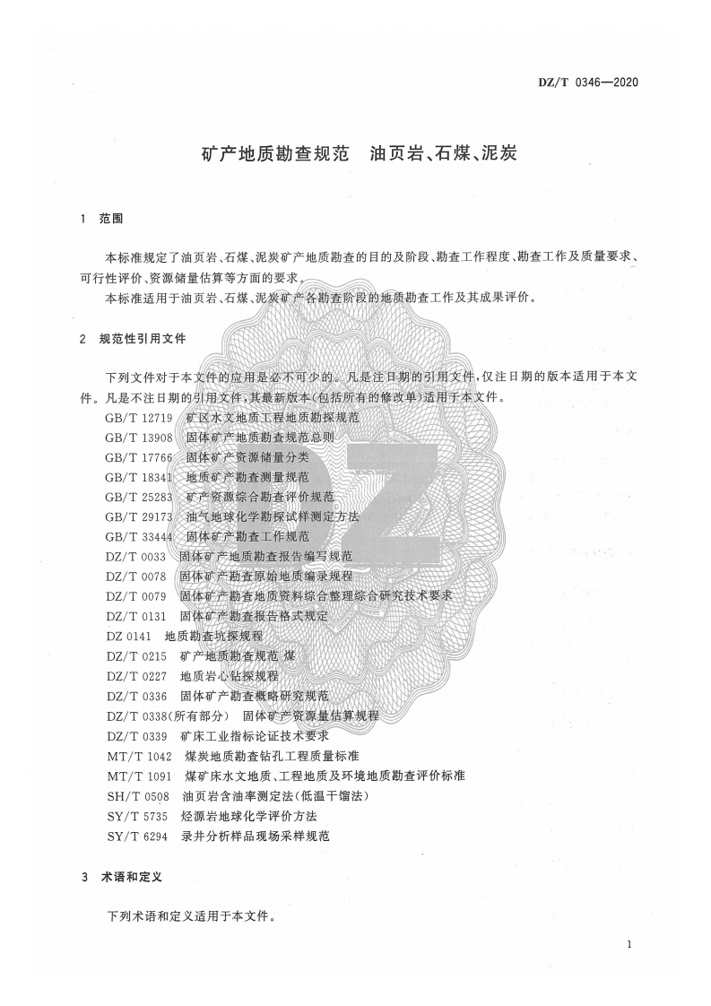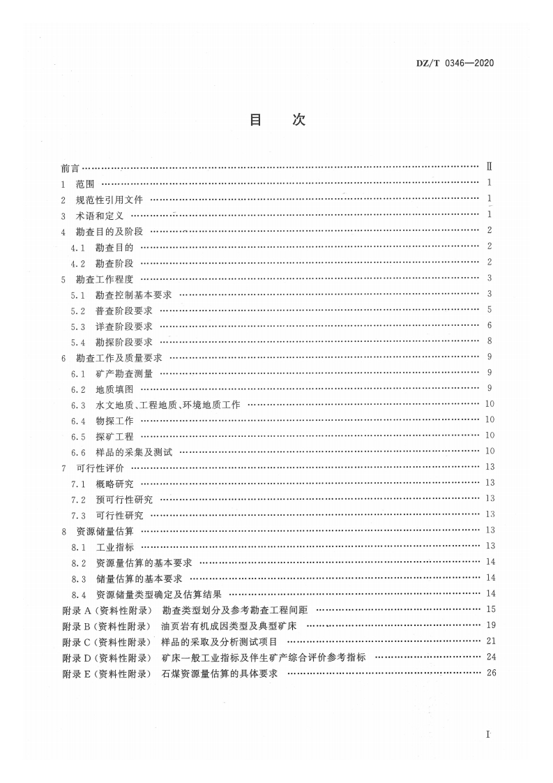 ICS73.020D10/1902中华人民共和国地质矿产行业标准DZ/T0346一2020矿产地质勘查规范油页岩、石煤、泥炭Specifications for oil shale,stone coal and peat mineral exploration2020-04-30发布2020-04-30实施中华人民共和国自然资源部发布