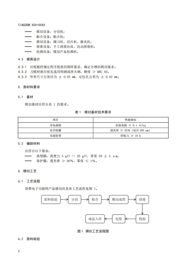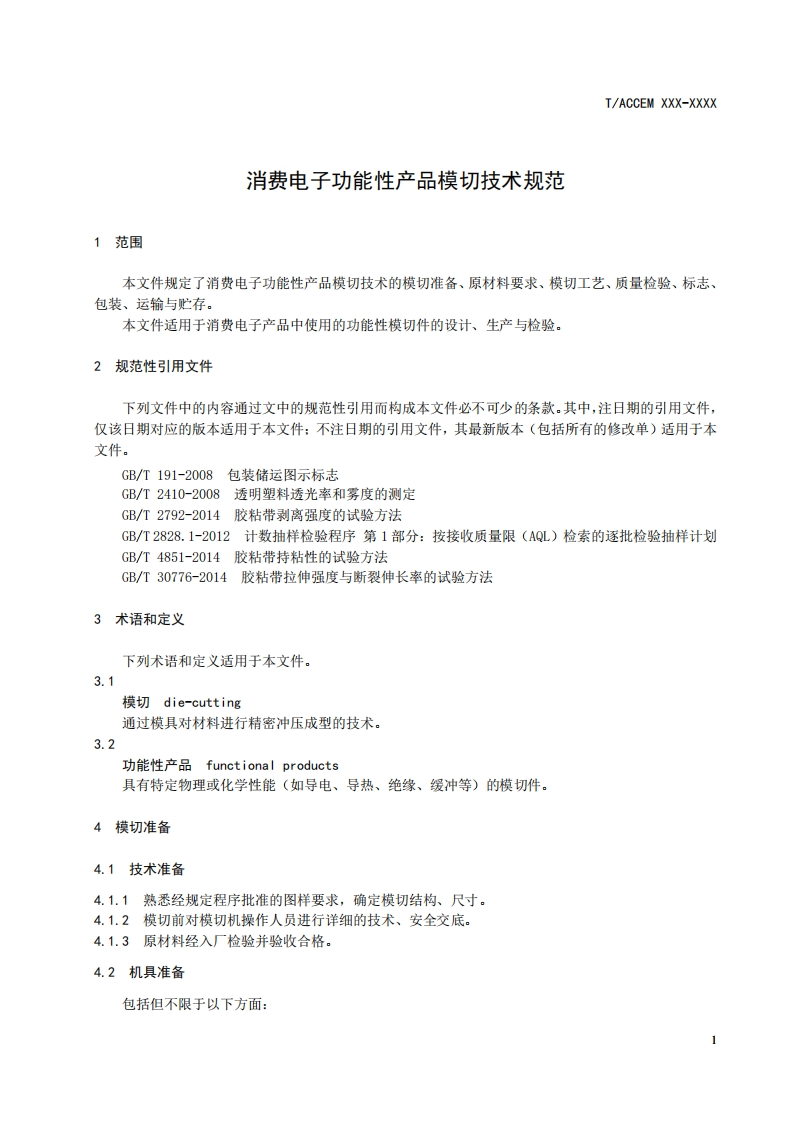 消费电子功能性产品模切技术规范Technicalspecificationfordiecuttingoffunctionalproductsinconsumereectronics348072@abc19小时前发布关注私信0.23MB9页038消费电子功能性产品模切技术规范Technicalspecificationfordiecuttingoffunctionalproductsinconsumereectronics此内容为付费资源,请付费后查看¥19¥23黄金会员免费钻石会员免费立即购买您当前未登录!建议登陆后购买,可保存购买订单付费资源 第1页 / 共9页 第2页 / 共9页 第3页 / 共9页 第4页 / 共9页 第5页 / 共9页 试读已结束,还剩4页,您可下载完整版后进行离线阅读 THE END标准规范 文本预览 1CS83.180CCS J 30IACCEM团体标准T/ACCEM XXXX-XXXX消费电子功能性产品模切技术规范Technical specification for die-cutting of functional products inconsumer electronics(征求意见稿)20XX-XX-Xx发布20XX-XX-XX实施中国商业企业管理协会发布 查看更多 收起部分 喜欢就支持一下吧收藏