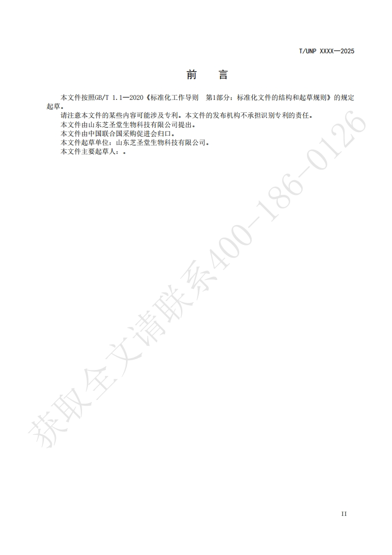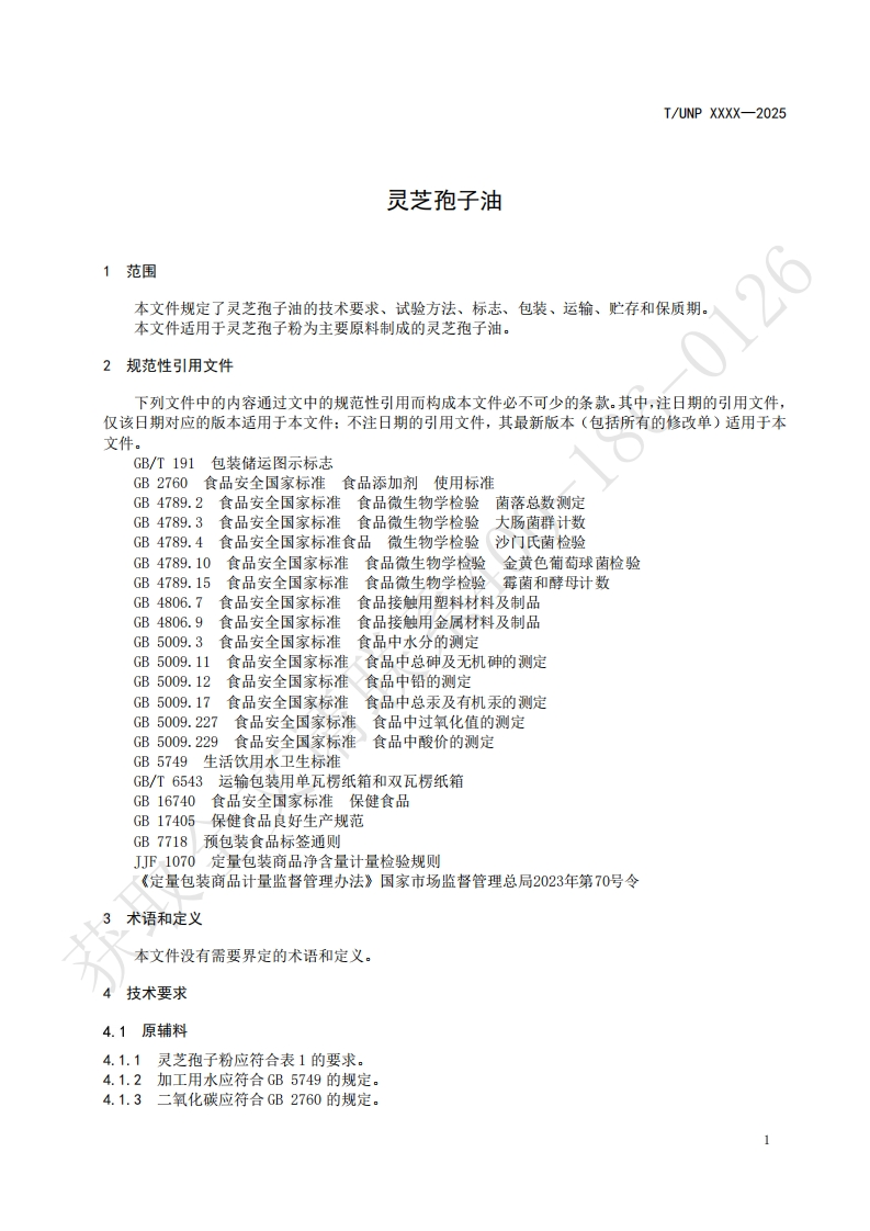 灵芝孢子油Ganodermalucidumsporesoi348072@abc19小时前发布关注私信0.28MB6页030灵芝孢子油Ganodermalucidumsporesoi此内容为付费资源,请付费后查看¥19¥23黄金会员免费钻石会员免费立即购买您当前未登录!建议登陆后购买,可保存购买订单付费资源 第1页 / 共6页 第2页 / 共6页 第3页 / 共6页 第4页 / 共6页 第5页 / 共6页 试读已结束,还剩1页,您可下载完整版后进行离线阅读 THE END标准规范 文本预览 ICS67.040UNSPSC 12.16.45CCSX83UNP团体标准T/UNP XXXX-2025186-0灵芝孢子油Ganoderma lucidum spores oil获取全文请联系征求意见稿)2025--发布2025--实施中国联合国采购促进会发布 查看更多 收起部分 喜欢就支持一下吧收藏