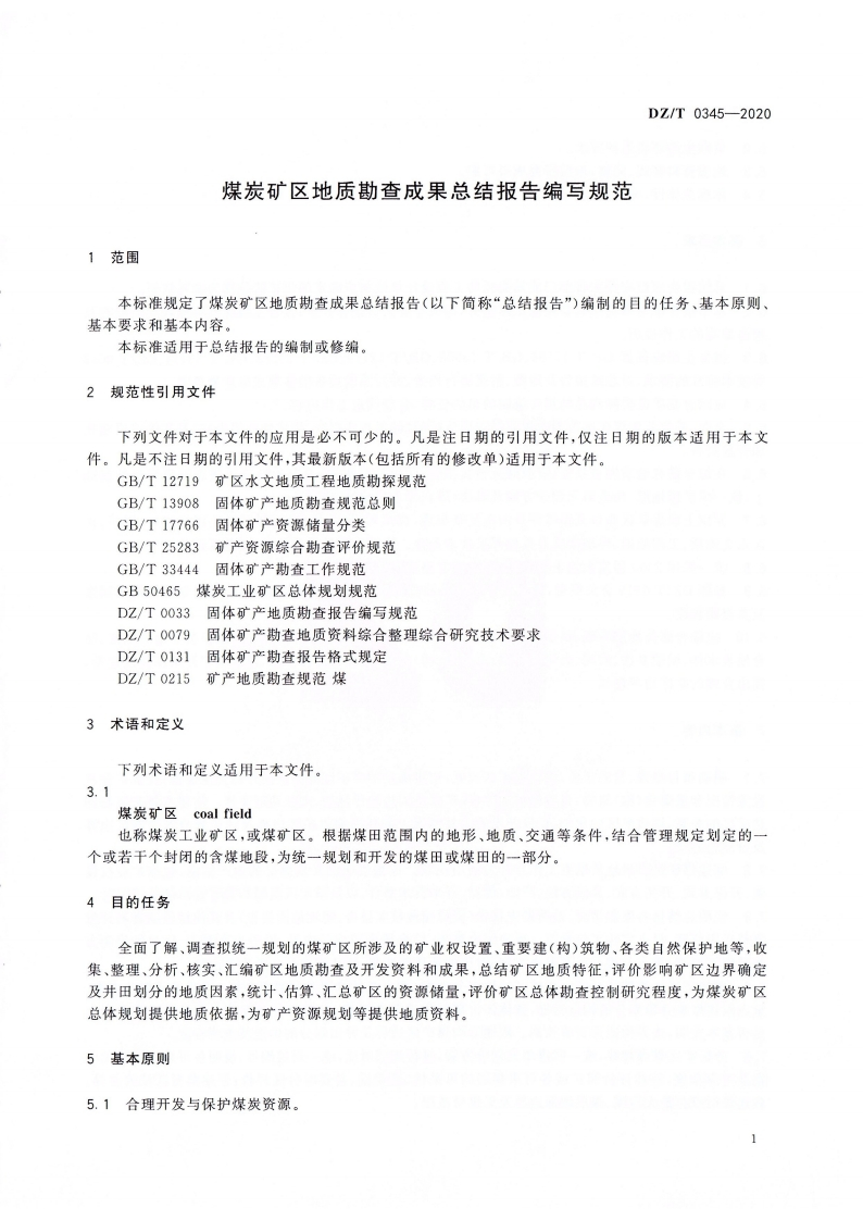 煤炭矿区地质勘查成果总结报告编写规范Specificationsforcompilationofsummaryreportongeologicalexplorationresultincoalfield348072@abc17小时前发布关注私信40.90MB22页026煤炭矿区地质勘查成果总结报告编写规范Specificationsforcompilationofsummaryreportongeologicalexplorationresultincoalfield此内容为付费资源,请付费后查看¥19¥23黄金会员免费钻石会员免费立即购买您当前未登录!建议登陆后购买,可保存购买订单付费资源 第1页 / 共22页 第2页 / 共22页 第3页 / 共22页 第4页 / 共22页 第5页 / 共22页 试读已结束,还剩17页,您可下载完整版后进行离线阅读 THE END标准规范 文本预览 ICs73.020D10/19DZ中华人民共和国地质矿产行业标准DZ/T0345-2020煤炭矿区地质勘查成果总结报告编写规范Specifications for compilation of summary report on geologicalexploration result in coal field2020-04-30发布2020-04-30实施中华人民共和国自然资源部发布均诊品意真伪 查看更多 收起部分 喜欢就支持一下吧收藏