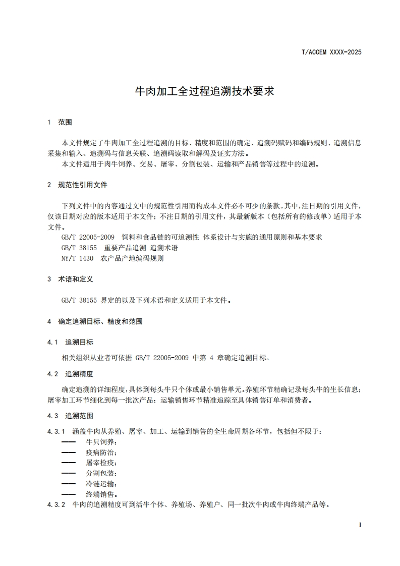 牛肉加工全过程追溯技术要求Technicalrequirementsforthewholeprocesstraceabilityofbeefprocessing348072@abc15小时前发布关注私信0.25MB10页041牛肉加工全过程追溯技术要求Technicalrequirementsforthewholeprocesstraceabilityofbeefprocessing此内容为付费资源,请付费后查看¥19¥23黄金会员免费钻石会员免费立即购买您当前未登录!建议登陆后购买,可保存购买订单付费资源 第1页 / 共10页 第2页 / 共10页 第3页 / 共10页 第4页 / 共10页 第5页 / 共10页 试读已结束,还剩5页,您可下载完整版后进行离线阅读 THE END标准规范 文本预览 ICS67.120.10CCS X 22IACCEM团体标准T/ACCEM XXXX-2025牛肉加工全过程追溯技术要求Technical requirements for the whole process traceability of beef processing(征求意见稿)2025-XX-XX发布2025-XX-XX实施中国商业企业管理协会发布 查看更多 收起部分 喜欢就支持一下吧收藏